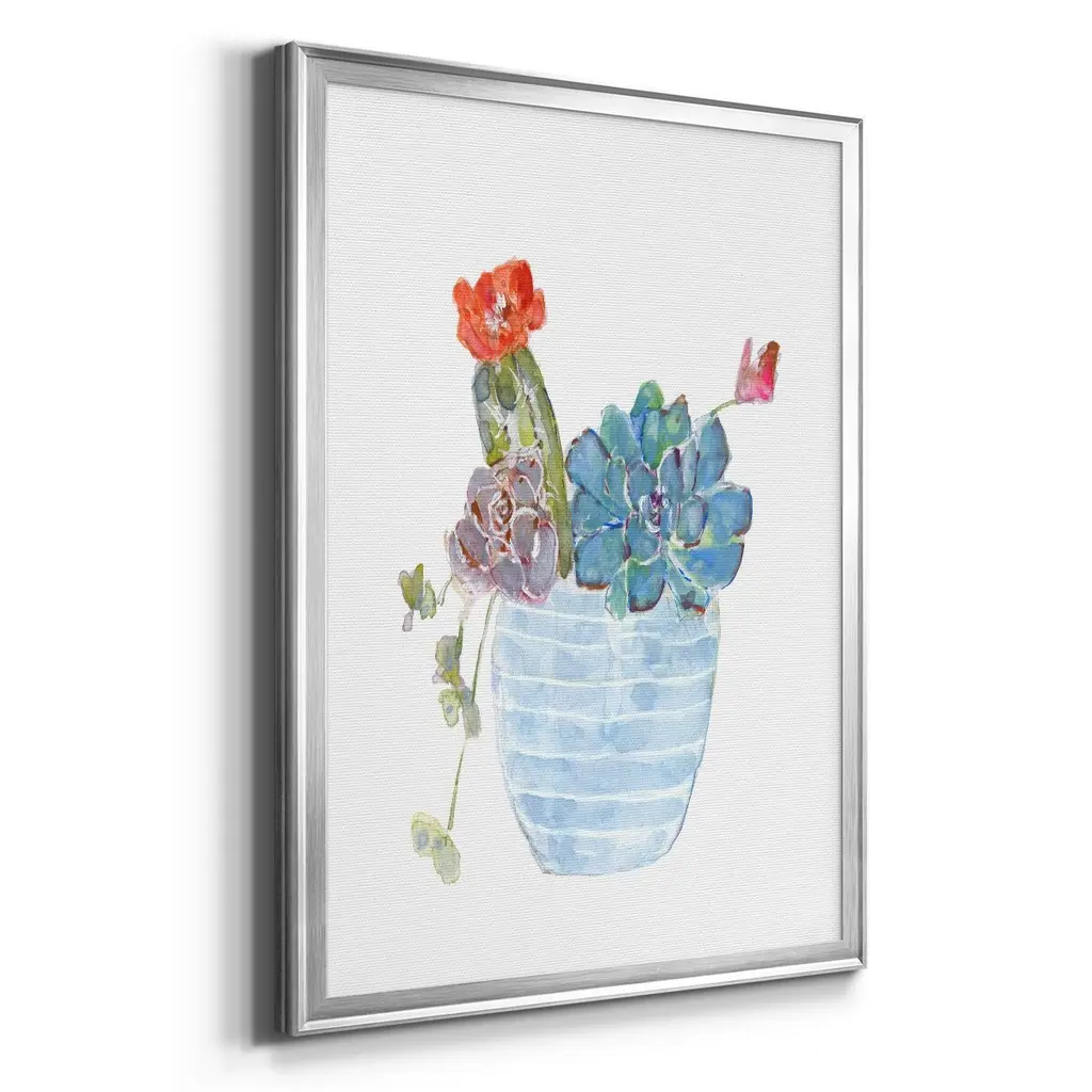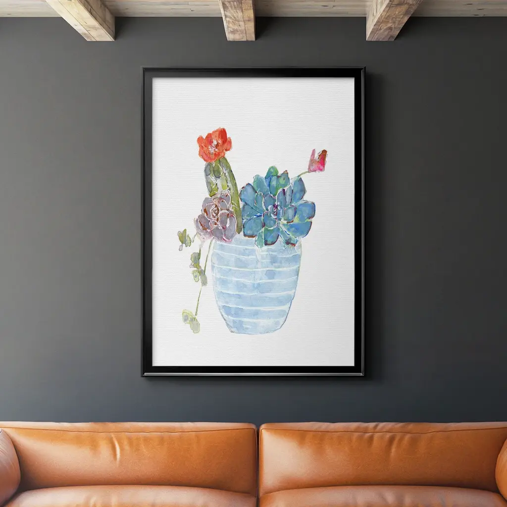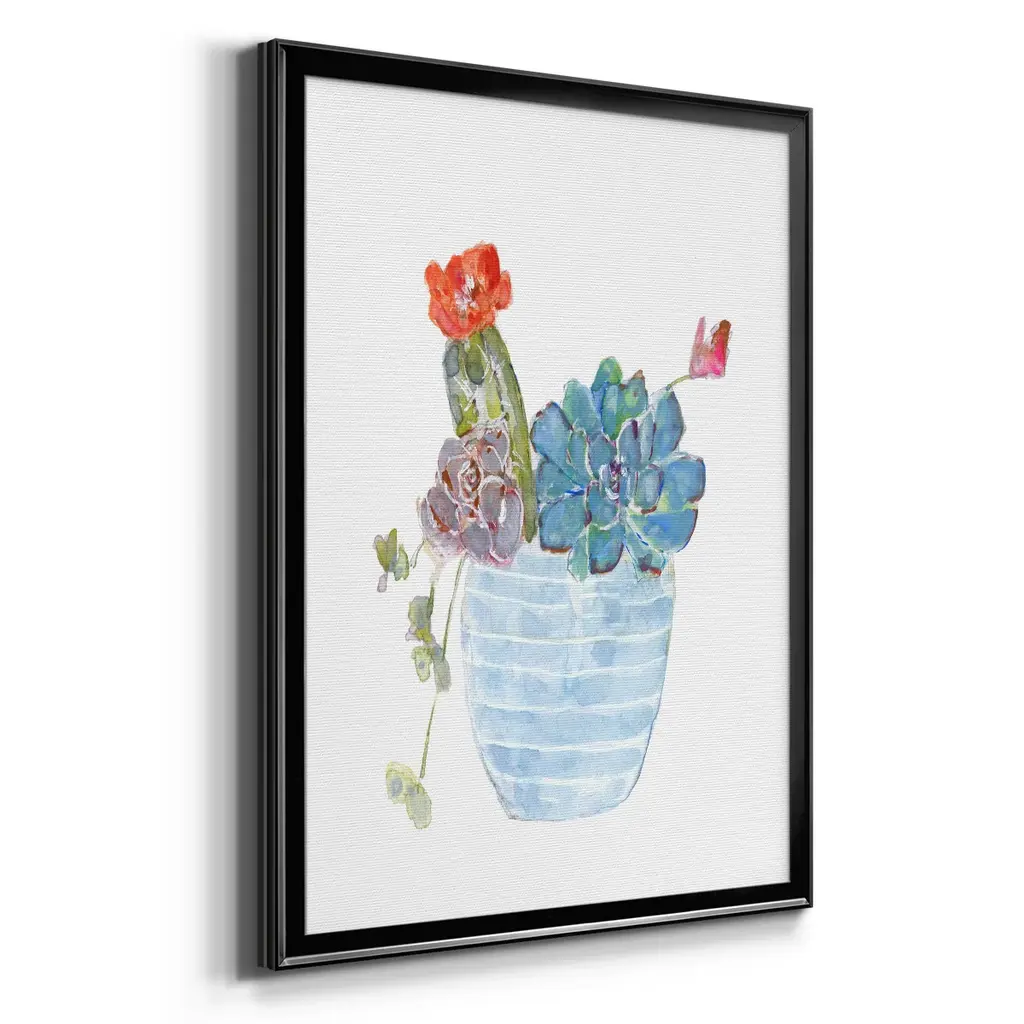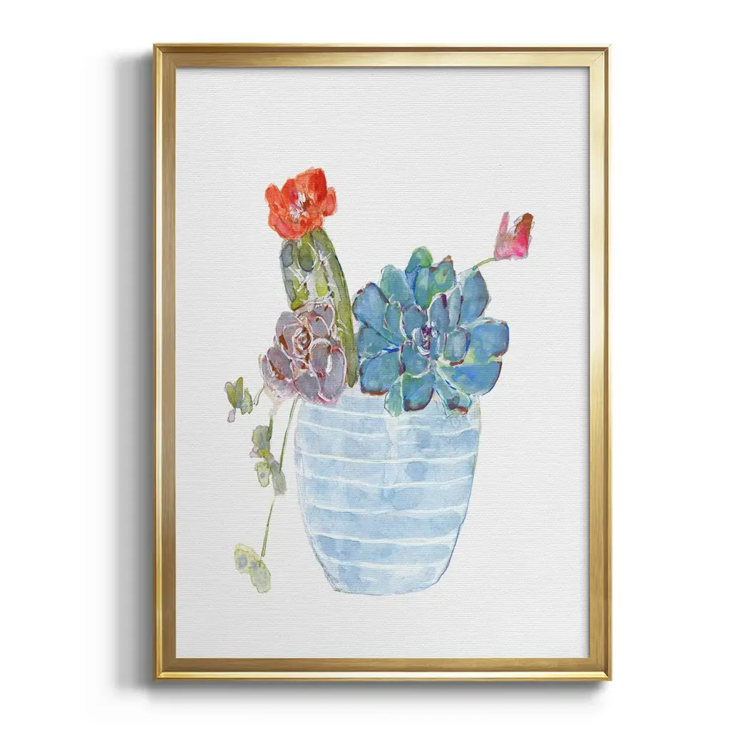 Cactus and Succulent Blooms I Premium Framed Print - Ready to Hang A Premium Framed Print created to last. Framed in distressed wood and available in an array of sizes and colors Featuring a beveled a solid wood stretcher bar, each piece comes ready to hand 4 SIZES AVAILABLE 30.5''X42.5'' - Overall Size 26.5'X36.5'' - Overall Size 22.5''x30.5'' - Overall Size 18.5''x24.5'' - Overall Size Each piece is made to order. Each piece comes with hanging hardware. Made in the USA Ready to Hang
