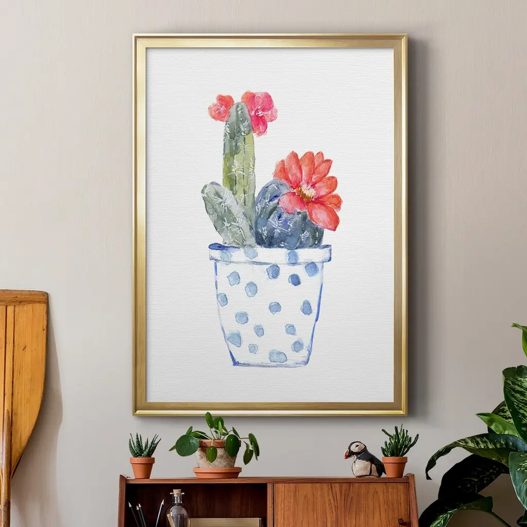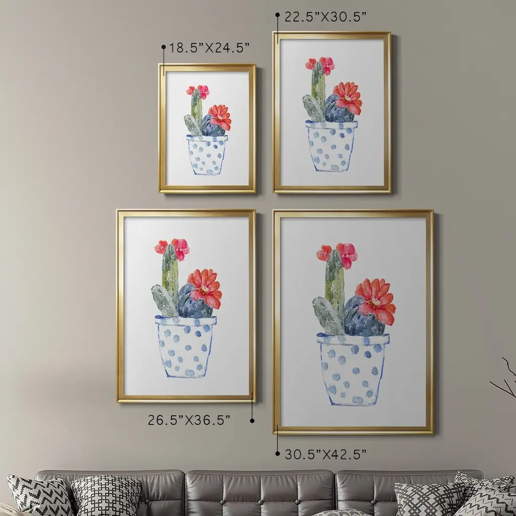 Cactus and Succulent Blooms II Premium Framed Print - Ready to Hang A Premium Framed Print created to last. Framed in distressed wood and available in an array of sizes and colors Featuring a beveled a solid wood stretcher bar, each piece comes ready to hand 4 SIZES AVAILABLE 30.5''X42.5'' - Overall Size 26.5'X36.5'' - Overall Size 22.5''x30.5'' - Overall Size 18.5''x24.5'' - Overall Size Each piece is made to order. Each piece comes with hanging hardware. Made in the USA Ready to Hang