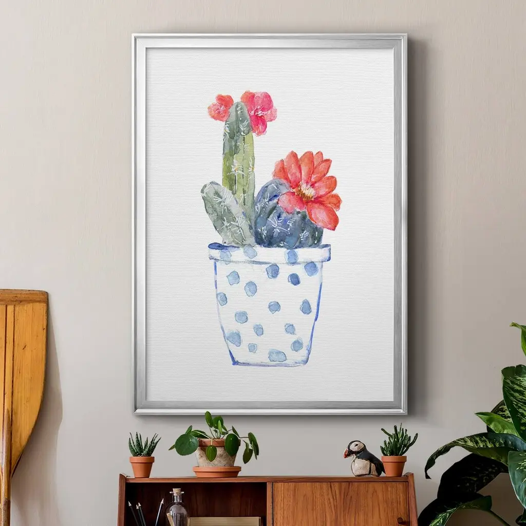 Cactus and Succulent Blooms II Premium Framed Print - Ready to Hang A Premium Framed Print created to last. Framed in distressed wood and available in an array of sizes and colors Featuring a beveled a solid wood stretcher bar, each piece comes ready to hand 4 SIZES AVAILABLE 30.5''X42.5'' - Overall Size 26.5'X36.5'' - Overall Size 22.5''x30.5'' - Overall Size 18.5''x24.5'' - Overall Size Each piece is made to order. Each piece comes with hanging hardware. Made in the USA Ready to Hang
