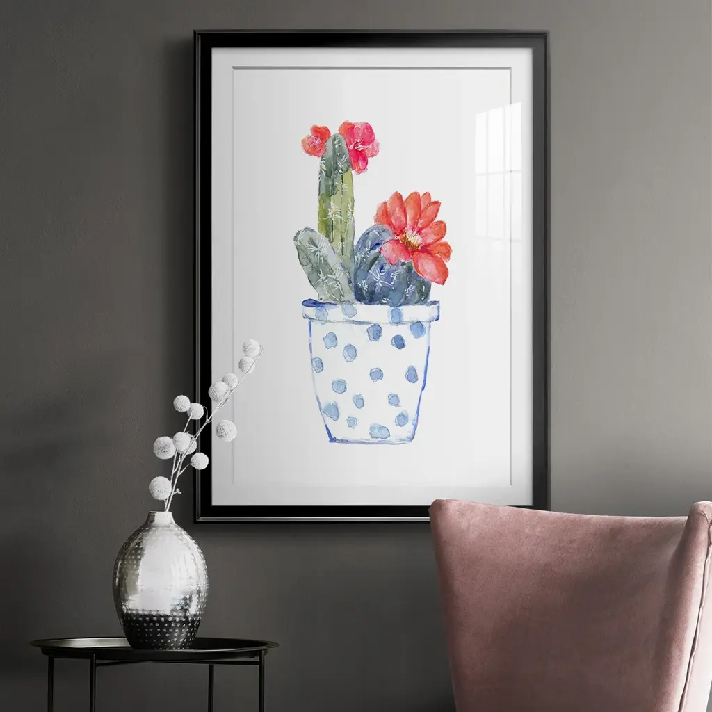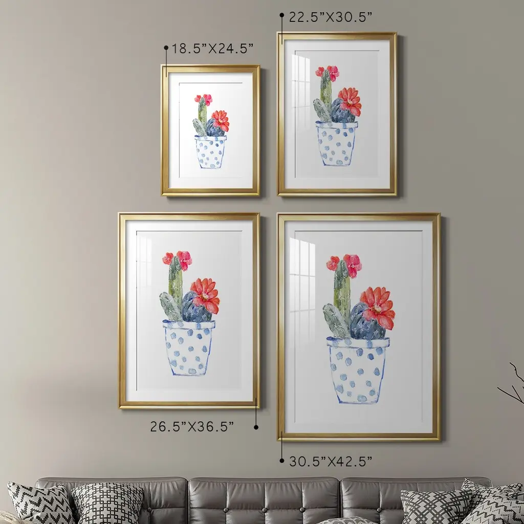 Cactus and Succulent Blooms II Premium Framed Print - Ready to Hang A Premium Framed Print created to last. Framed in distressed wood and available in an array of sizes and colors Featuring a beveled a solid wood stretcher bar, each piece comes ready to hand 4 SIZES AVAILABLE 30.5''X42.5'' - Overall Size 26.5'X36.5'' - Overall Size 22.5''x30.5'' - Overall Size 18.5''x24.5'' - Overall Size Each piece is made to order. Each piece comes with hanging hardware. Made in the USA Ready to Hang Giclee Paper Print Acrylic Glass Beveled Matt Board