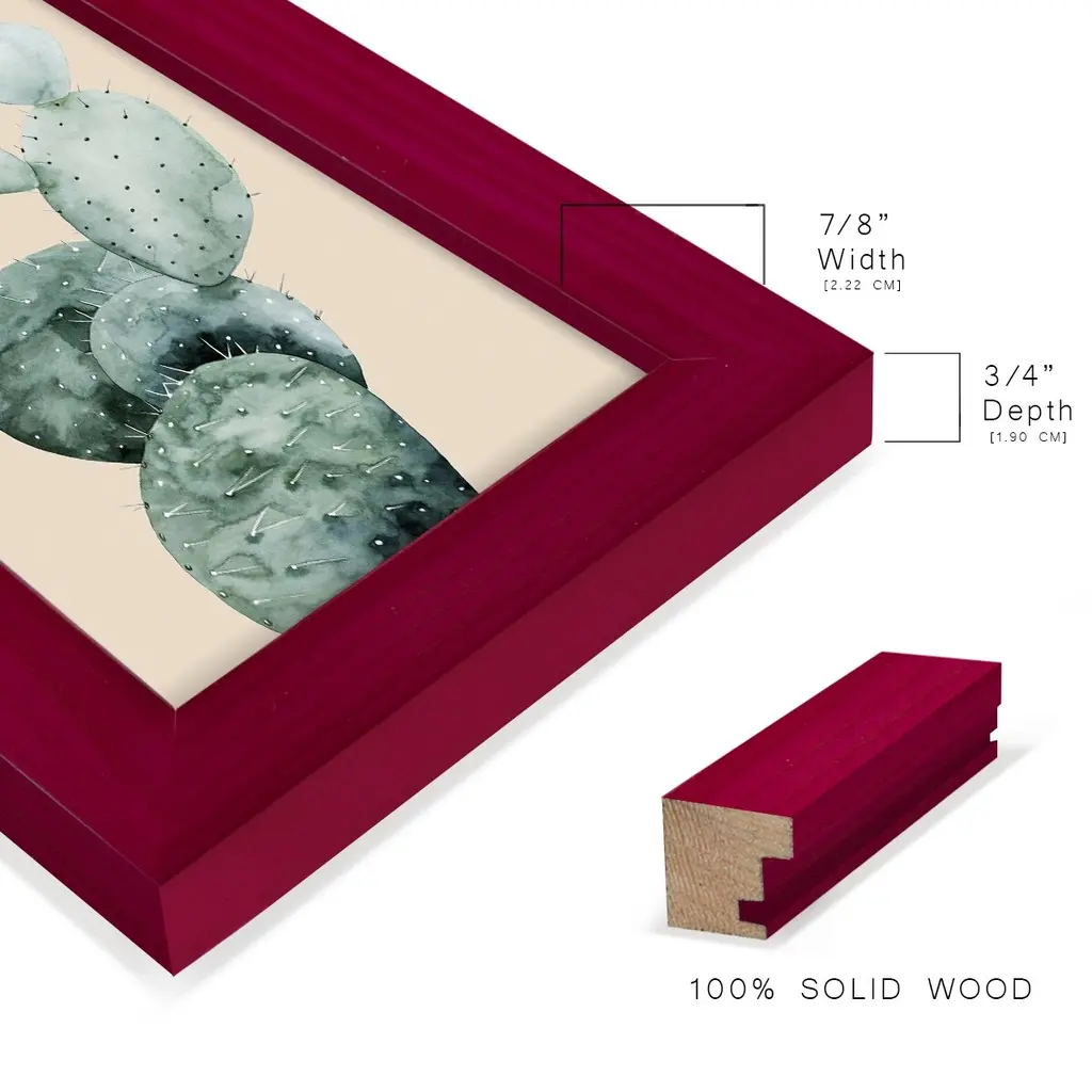 Cactus on Coral I -EZ SWITCH Framed Print w/glass-Cherry Red A delightful, framed print. Featuring a solid wood frame with real wood glass. This premium print is giclee quality. In addition, every frame features a removable back and table top stand. This allows you to change your art in the future or to just stand the art on a table for a new look. We are sure you'll enjoy our new series of EZ SWITCH Framed Art. Solid Wood Frame Real Glass Removable / Replaceable Art Built in Tabletop Stand Sizes range from 4x6 up to 12x15 - buy just one or pair them up as sets as you see fit.