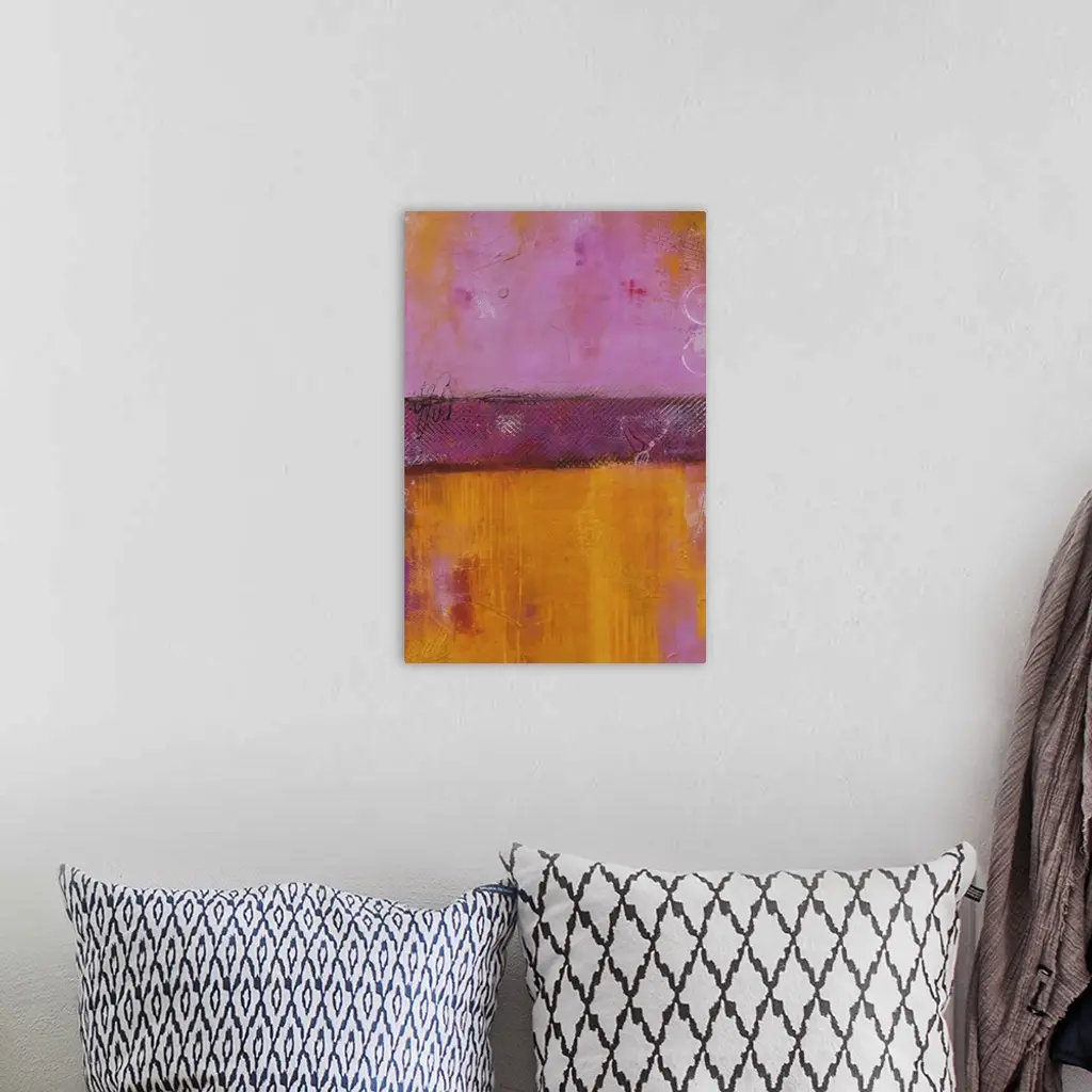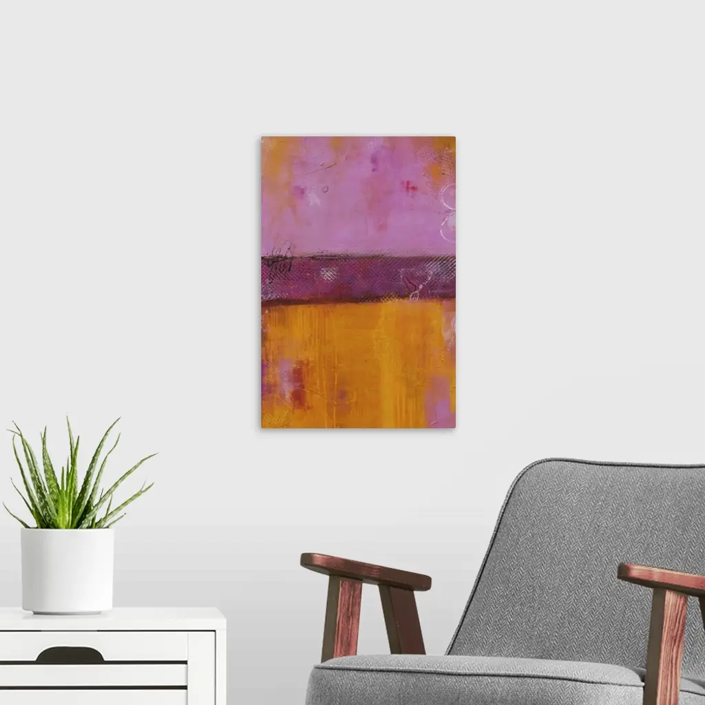 Contemporary color field style painting using bright colors.