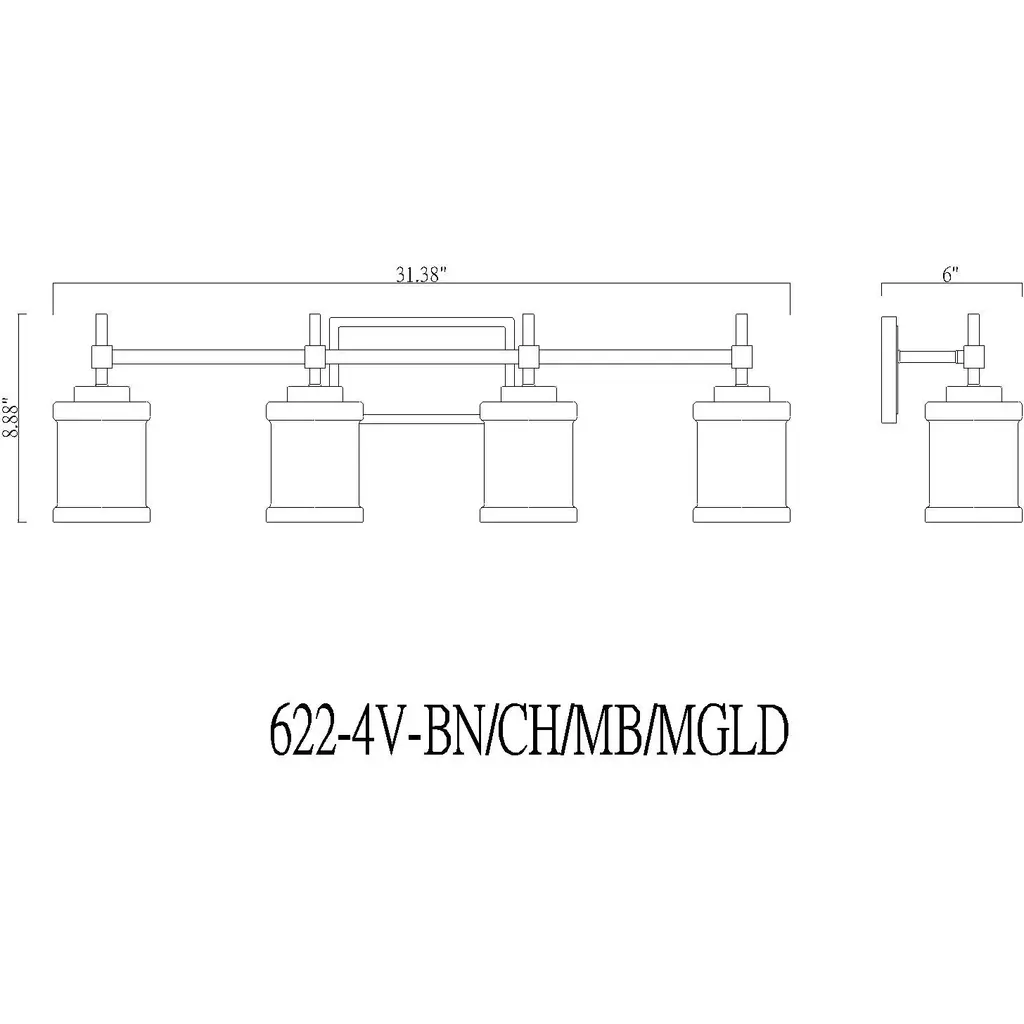 Cadoc 4 Light 31.5 Inch Modern Gold Bath Vanity Light Wall Light