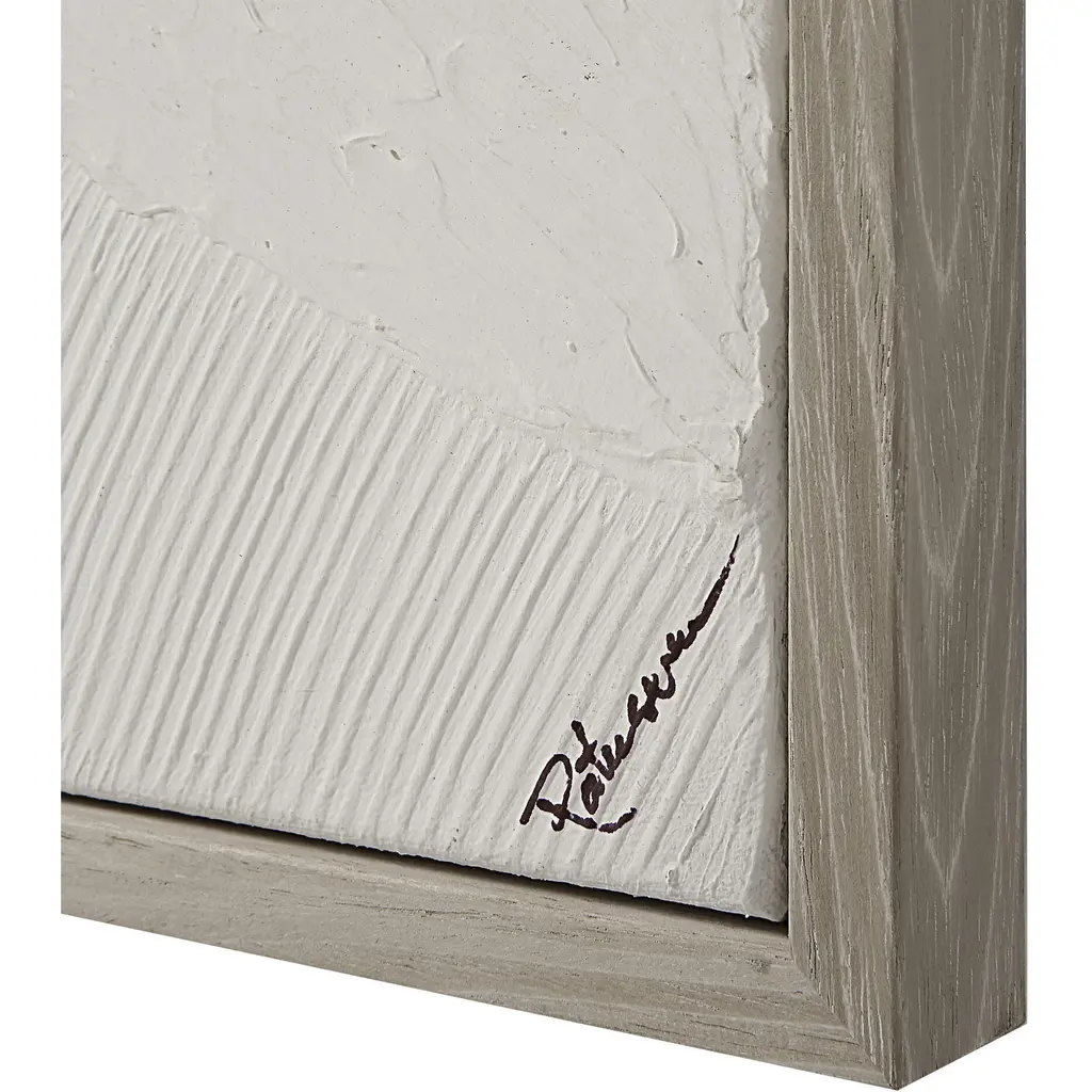 Subtle details and a minimal palette lend an air of sophistication to the home interior. When set against a vibrant or wall-papered wall, this art painting and its white frame require no extra embellishment to pop. Alternatively, when this canvas painting hangs against a white backdrop, it blends and allows the textured strokes to take focus.
