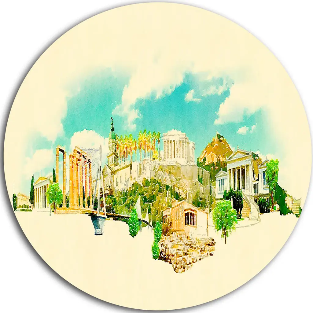 Cairo Panoramic View, Cityscape Watercolor Round Metal Wall Art, 11"