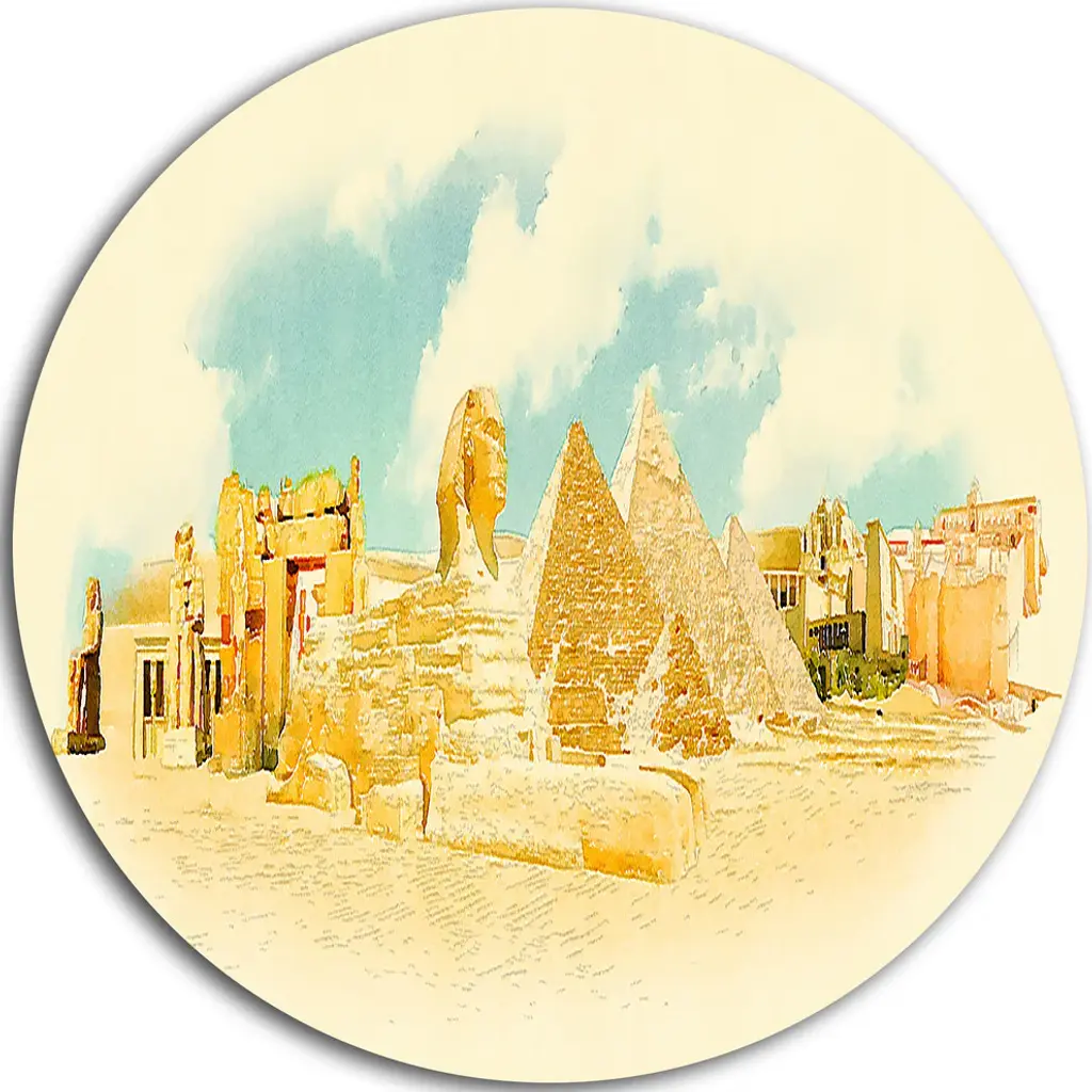 "Cairo Panoramic View" Watercolor Metal Wall Art, 3 Panels, 36"x28"