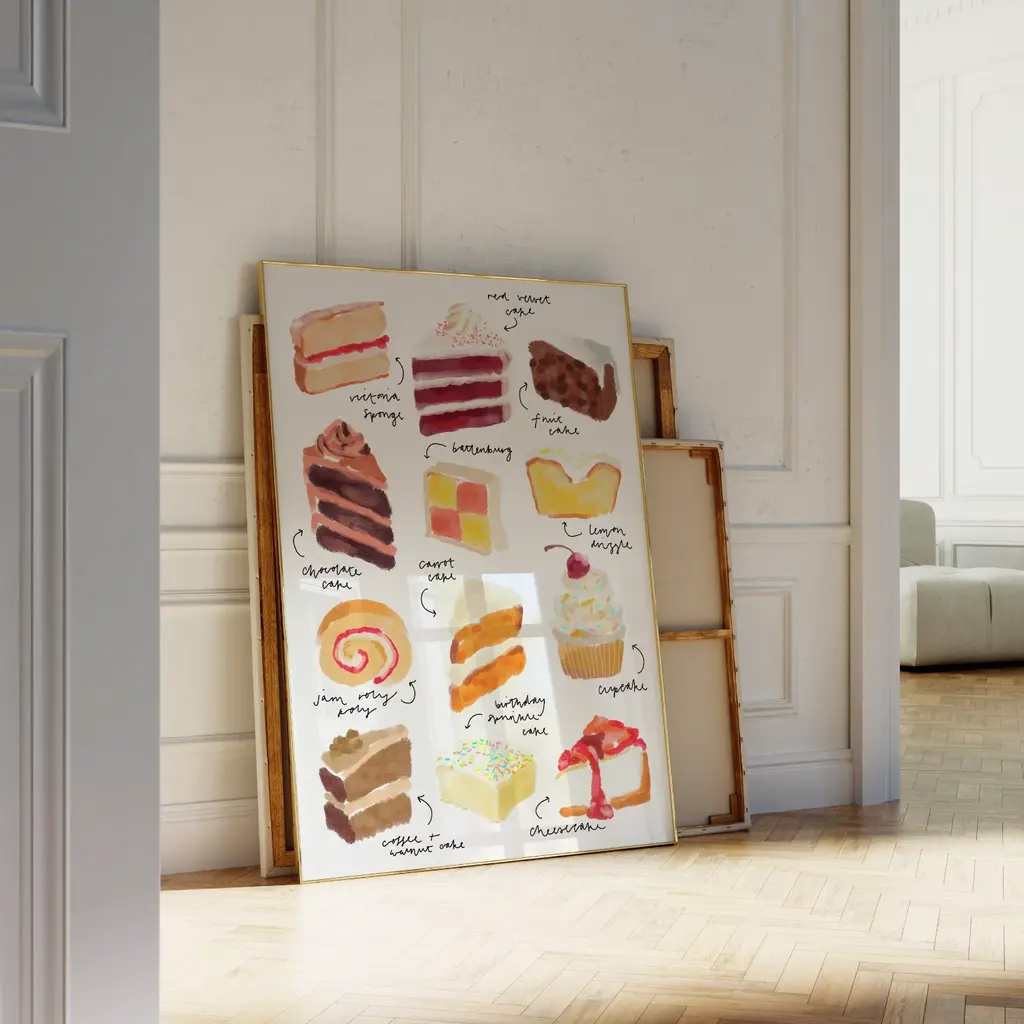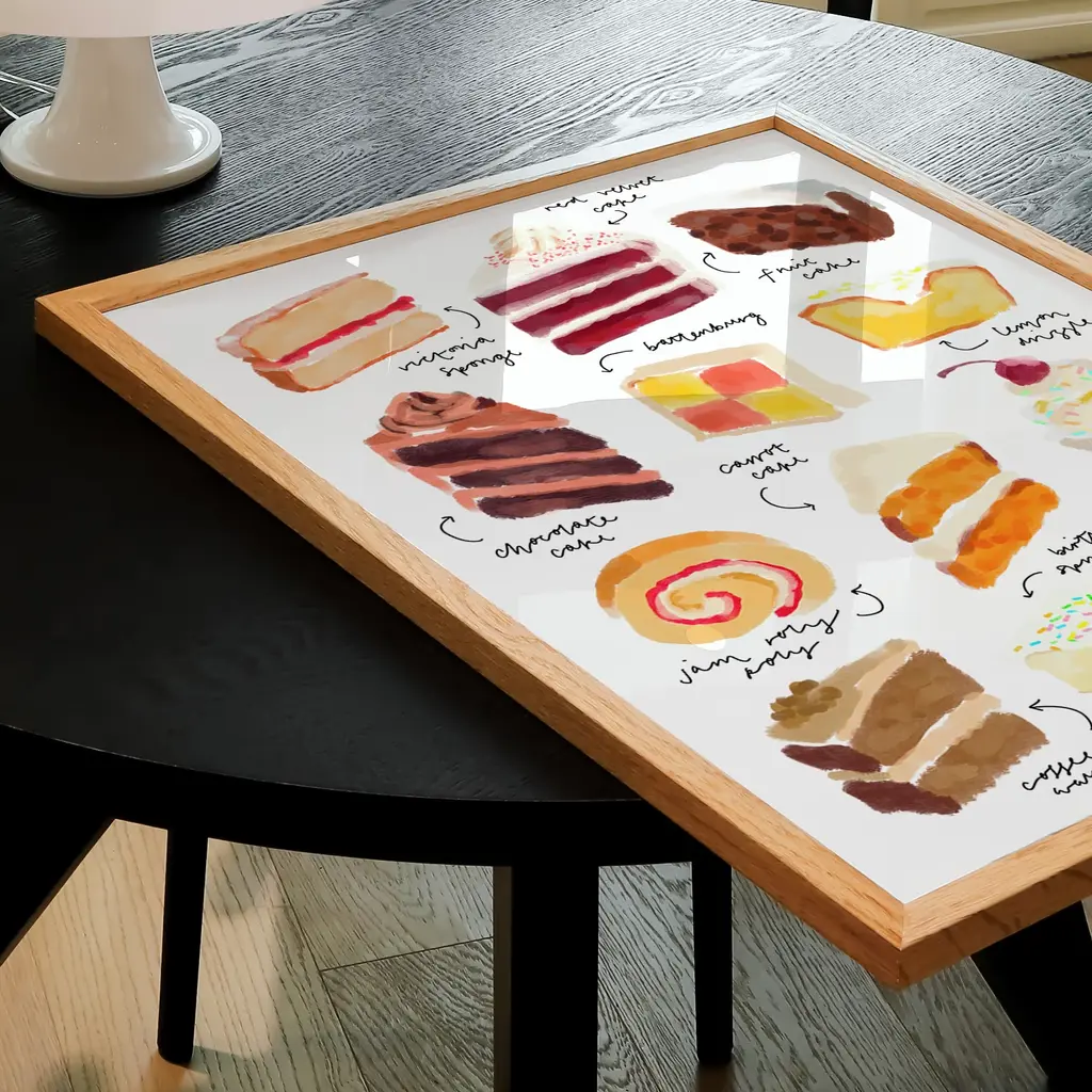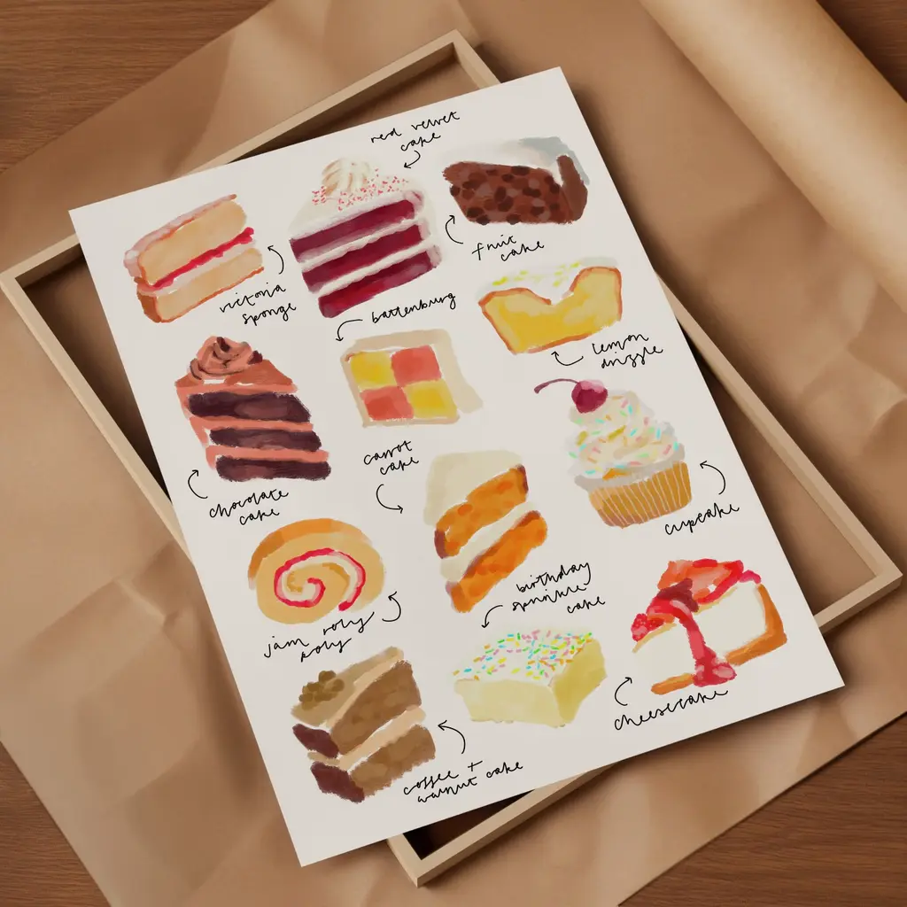 Cake Hand Painted Art Print - A3Indulge your sweet tooth and add a delightful touch to your kitchen with our hand painted "Cake" Print. Perfect for kitchens, dining areas, or as a gift for baking enthusiasts, this print is sure to bring a smile to your face because everyone loves cake. All prints are digitally designed by myself and printed to order.Smooth fine art 230 gsm matte card. Printed with vivid colour and detail. Sold without a frame.