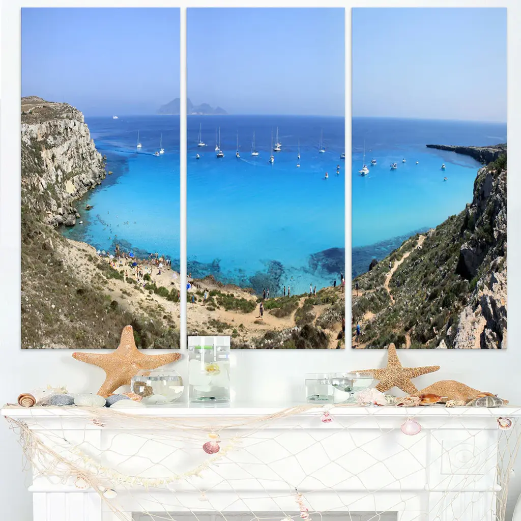 "Cala Rossa Beach Sicily Italy" Metal Wall Art, 3 Panels, 36"x28"