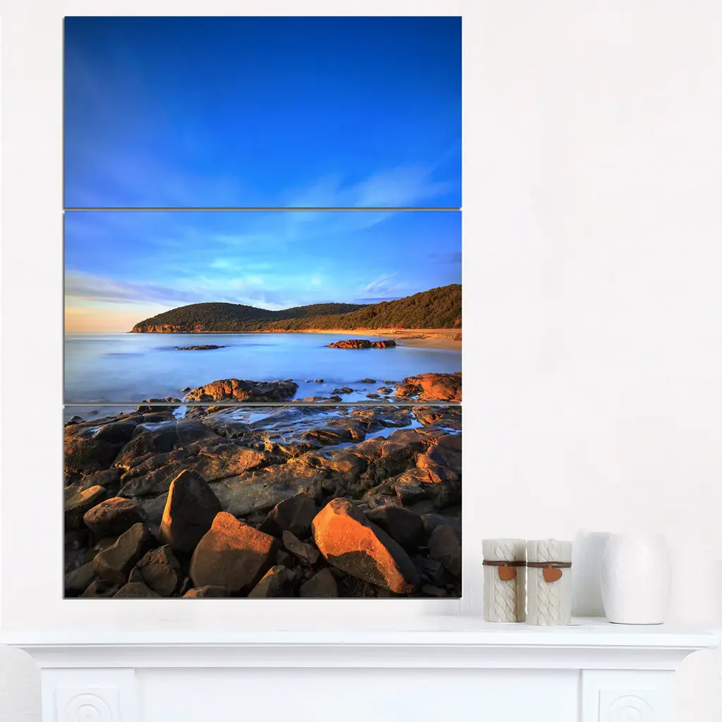 "Cala Violina Bay Beach Sunset" Photo Metal Wall Art, 3 Panels, 28"x36"