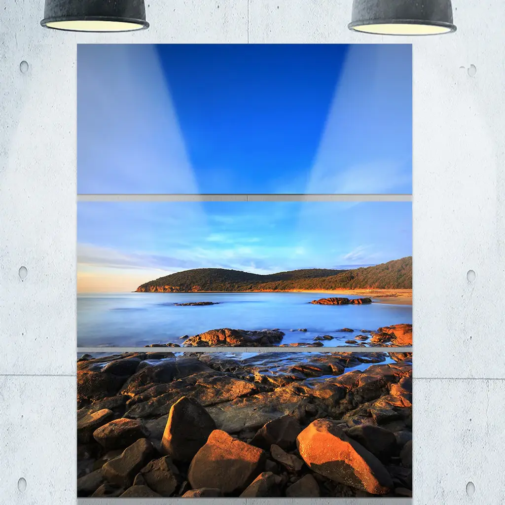 Bring contemporary abstraction to your home with this large 28W x 36H Metal Wall Art. This Cala Violina Bay Beach Sunset Metal Artwork makes it the focal point of any room or office. - White gloss coating ensures colors are extra vibrant with light reflection.- Aluminum grade sheet metal with 1-inch mounting frame on the back giving the illusion that the artwork is floating on the wall.- Mounting brackets are included along with instructions.- High quality digital images are created directly into a glossy aluminum panel producing a stunning and captivating print into the glossy finish of the metal.- Water, fire and scratch resistant HD aluminum panels.- Looks better than any photo paper and guaranteed to last at least 20 years- Easy to clean with a microfiber cloth. Colors are far superior to regular canvas art. - Easy to hang
