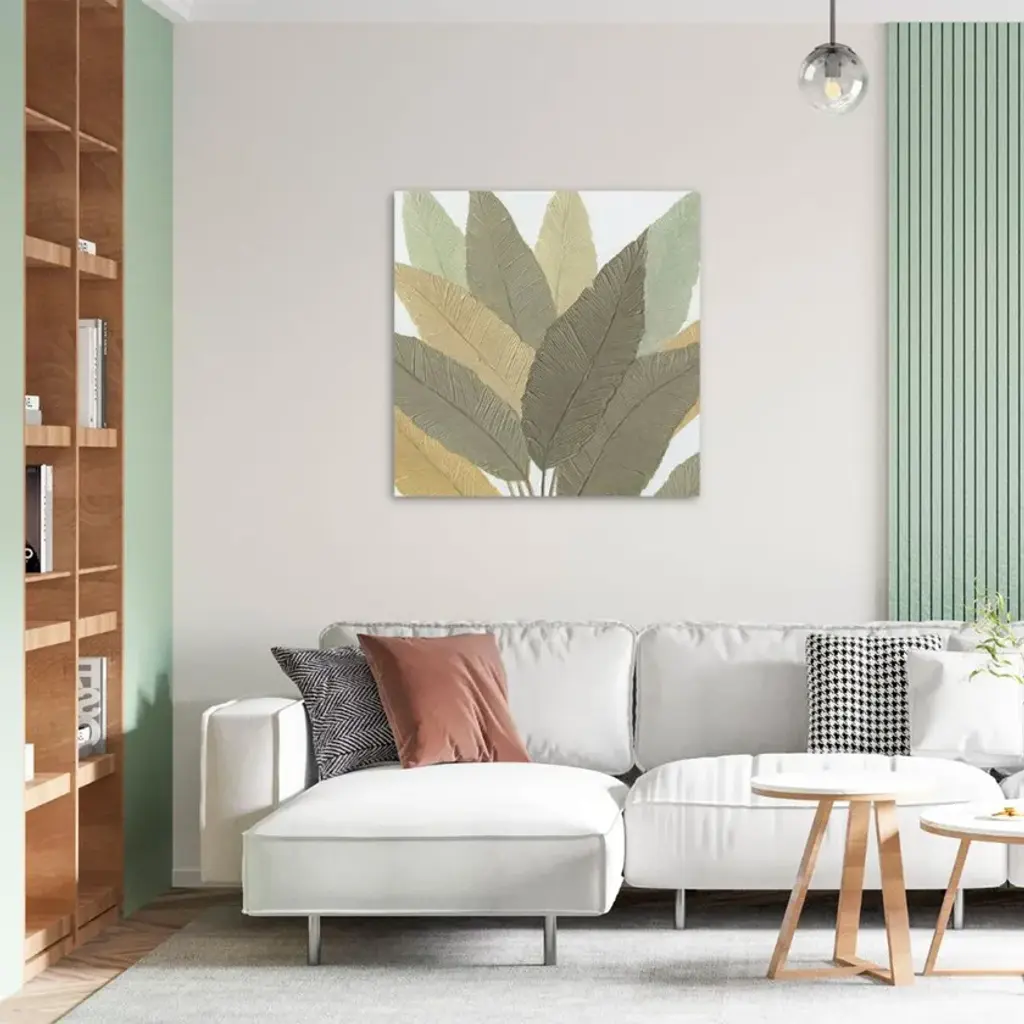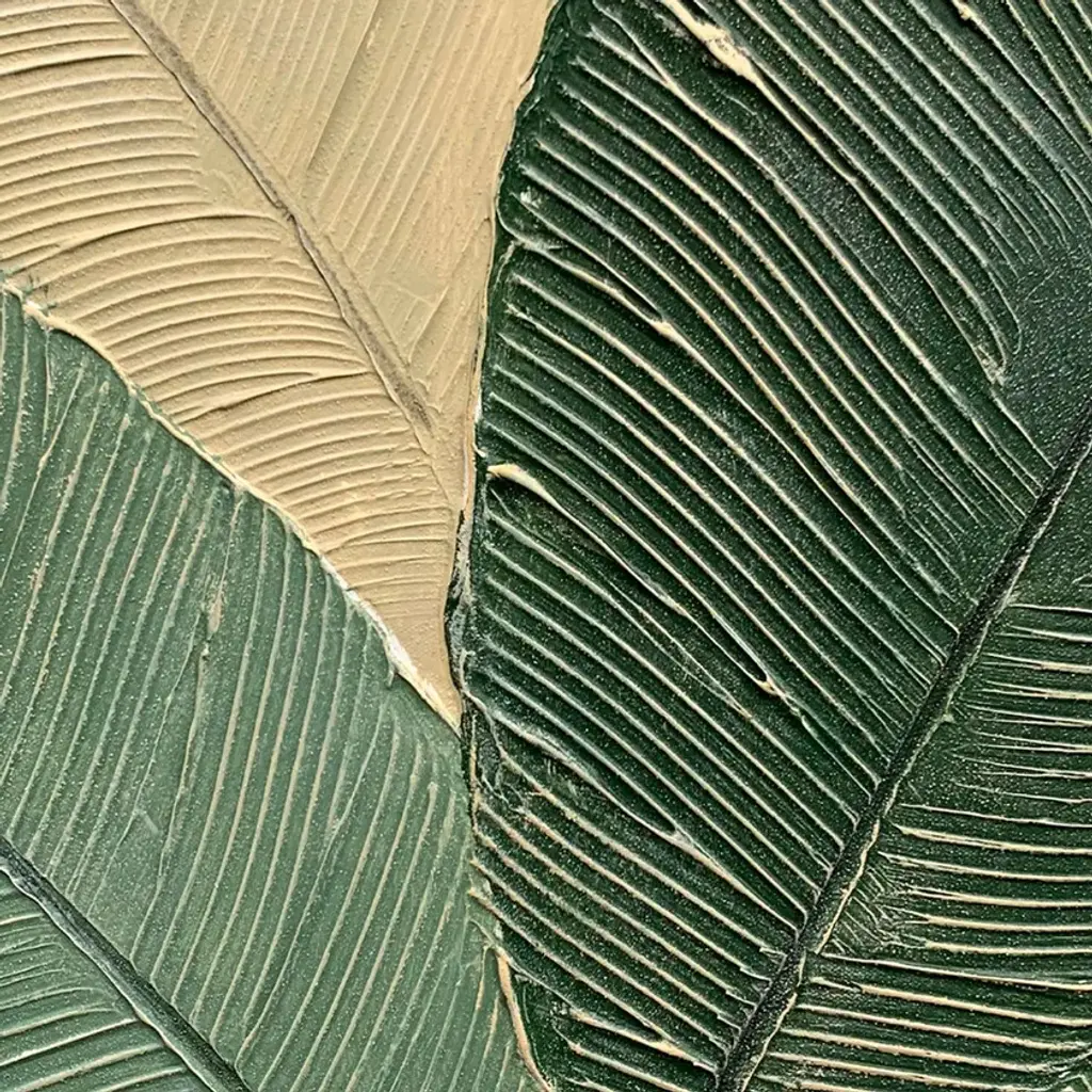 Calathea is a hand-painted nature painting on canvas. Overlapping leaves in various shades of green compose a textured artwork of decorative elegance. With a wooden inner frame and painted edges, the painting is ready to hang.The AGAVE Quadri collection represents the excellence of contemporary art applied to the world of interior design. Each piece, hand-painted with artisanal techniques by the finest artists in collaboration with the Italian company AGAVE, combines abstract, natural, and figurative elements to create unique and refined works. These paintings transform spaces into environments of great elegance and character, perfect for interior design projects that require a distinctive and artistic touch.