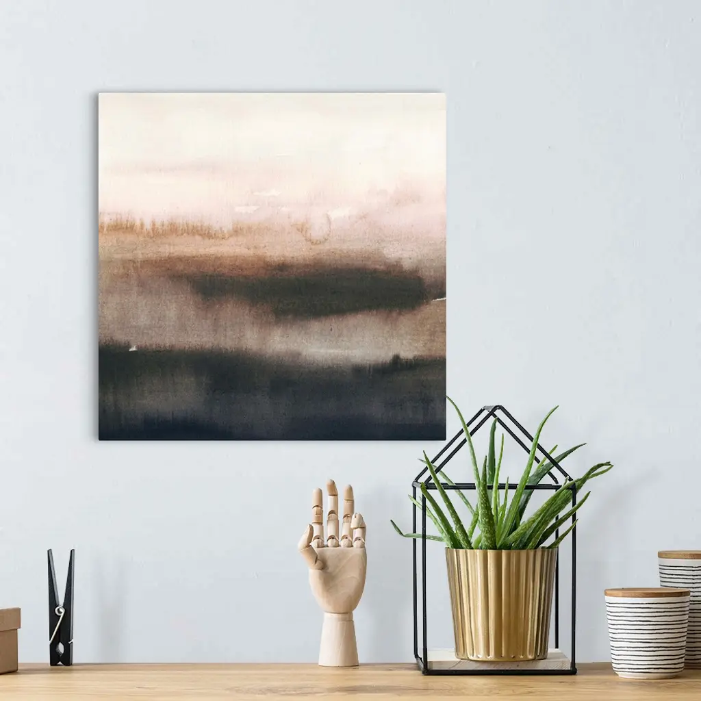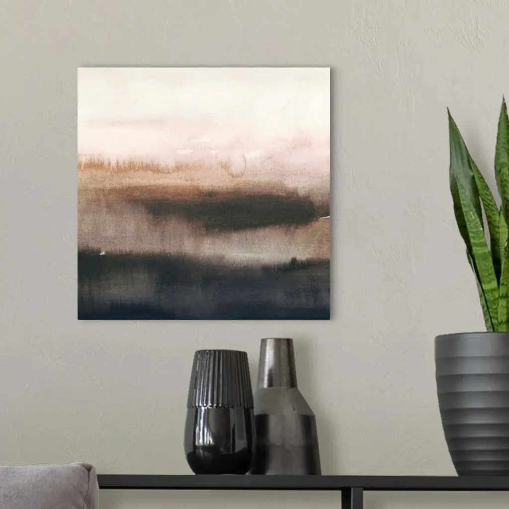 Contemporary abstract painting in overlapping shades of brown from dark to light.