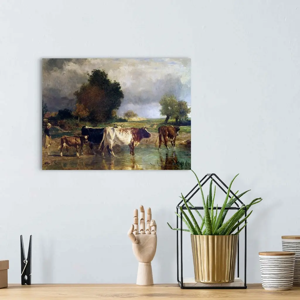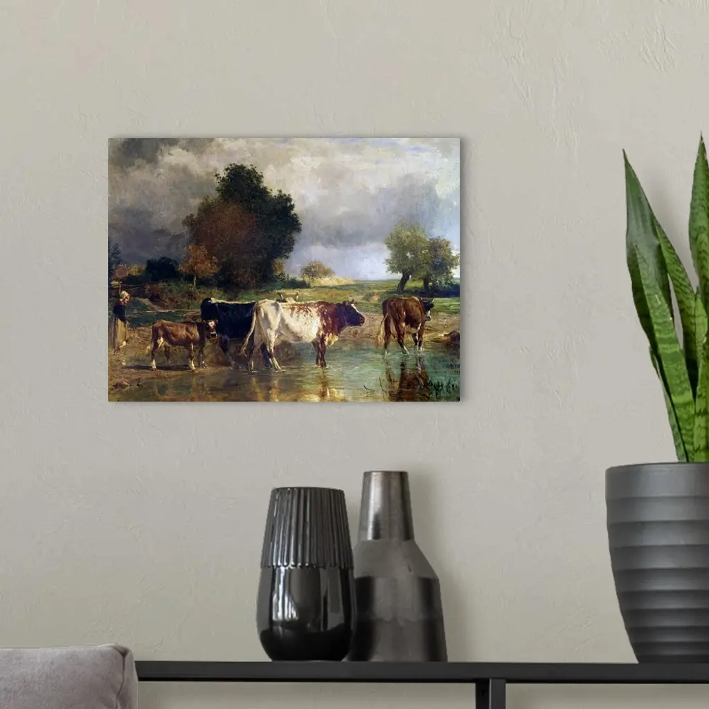 Calf and cows at the marl, called the watering. Painting by Constant Troyon (1810-1865), 19th century. 0,78 x 1,03 m. Louvre Museum, Paris