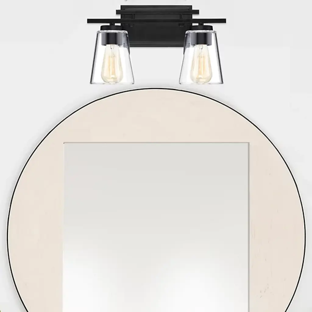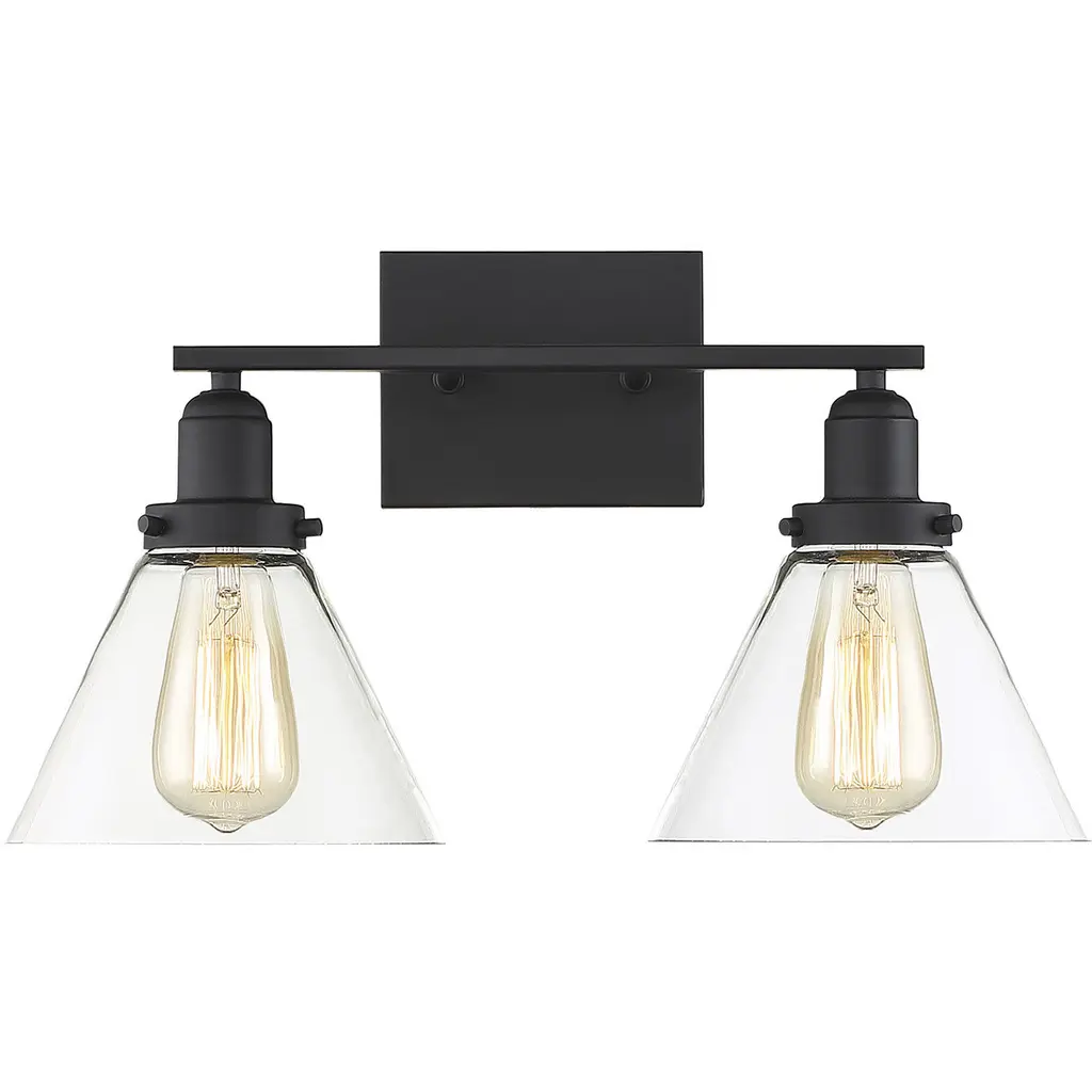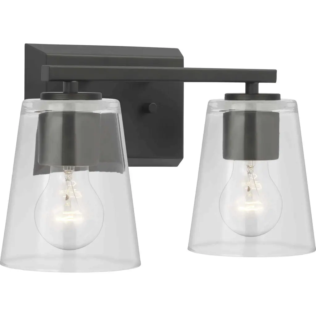 An elegant combination of glass and metal for a modern look that doesn’t compromise on durability. Give your bath space the lighting it deserves with the Calhoun Vanity Light by Savoy House. It features clear tapered glass shades, which are mounted on a pair of horizontally parallel rods attached to the rectangular wall plate. This bath bar can be placed adjacent to vanity mirrors or at the entrances to bathroom areas with tall ceilings to fill the vicinity with a soothing glow of light at a suitable brightness. The shades are reversible, which means they can be mounted facing upward or downward, whichever works best with the setting.