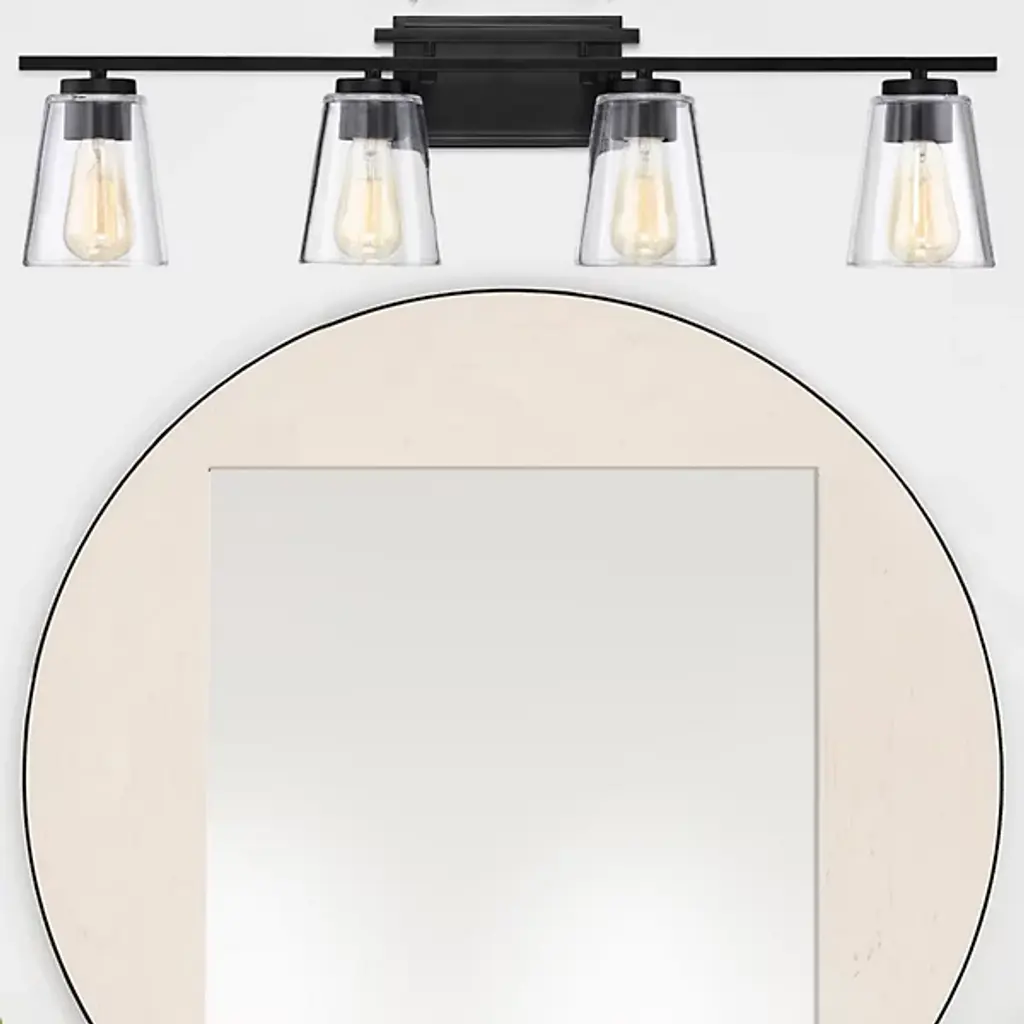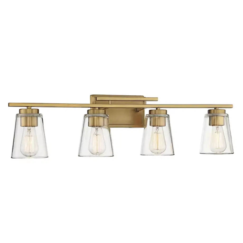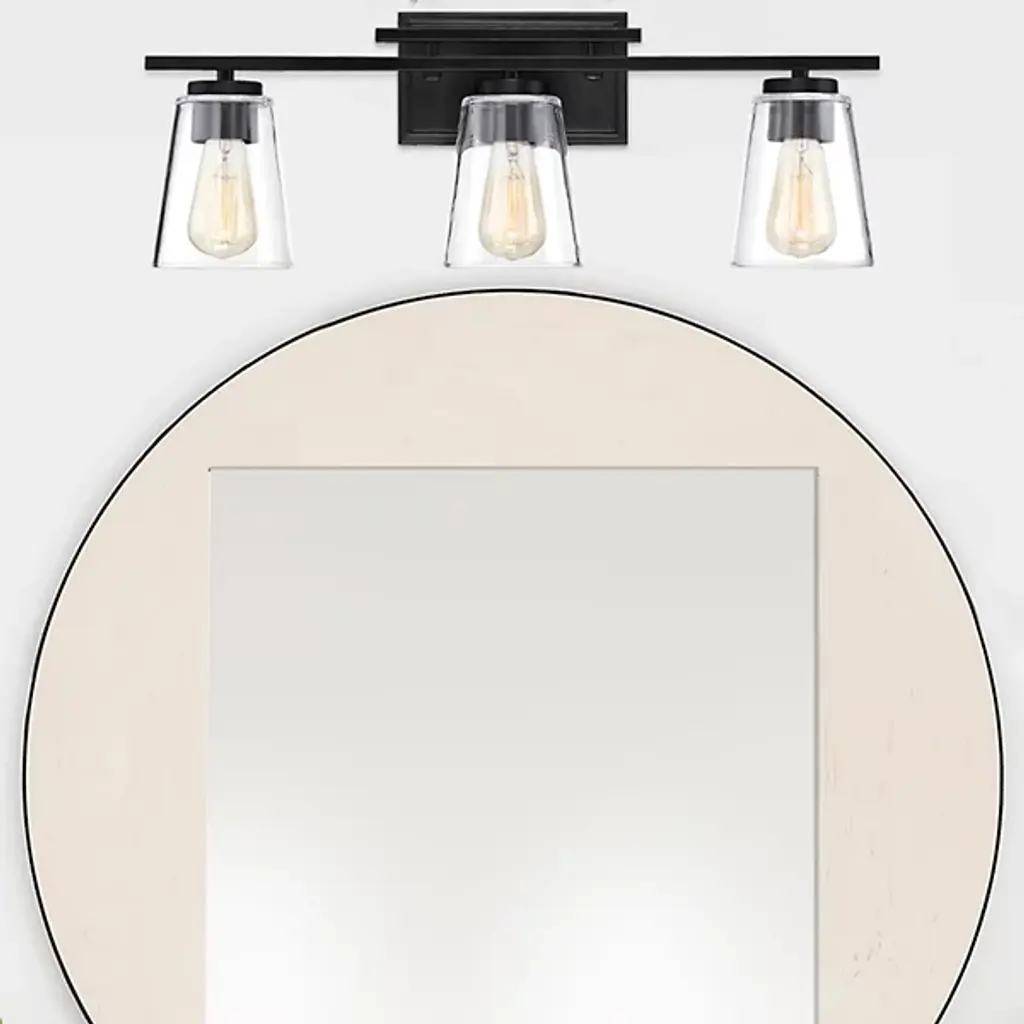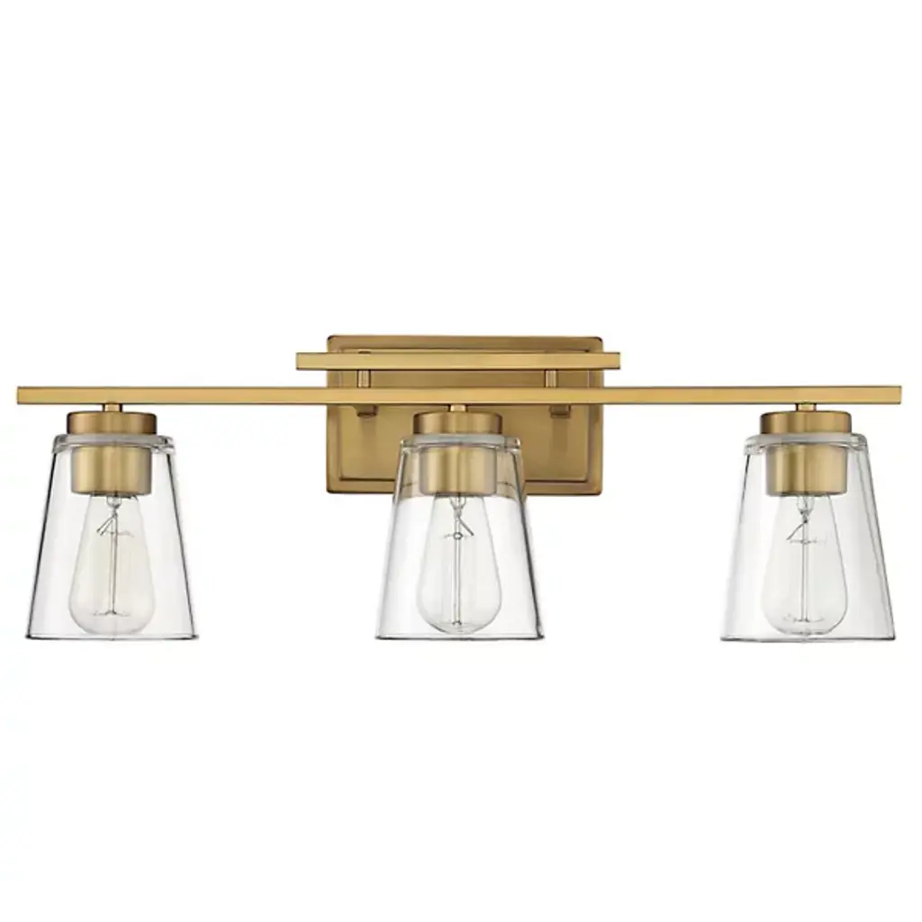 An elegant combination of glass and metal for a modern look that doesn’t compromise on durability. Give your bath space the lighting it deserves with the Calhoun Vanity Light by Savoy House. It features clear tapered glass shades, which are mounted on a pair of horizontally parallel rods attached to the rectangular wall plate. This bath bar can be placed adjacent to vanity mirrors or at the entrances to bathroom areas with tall ceilings to fill the vicinity with a soothing glow of light at a suitable brightness. The shades are reversible, which means they can be mounted facing upward or downward, whichever works best with the setting.