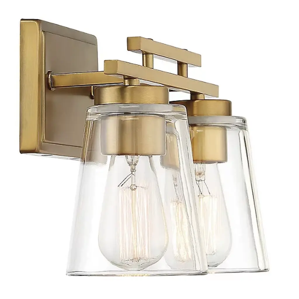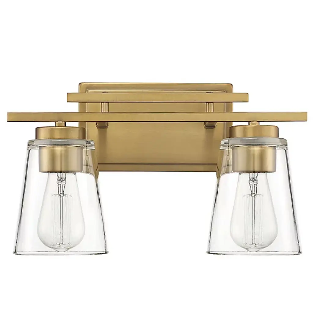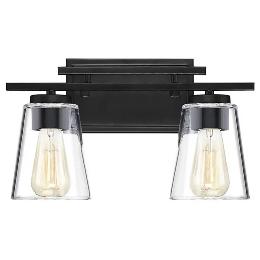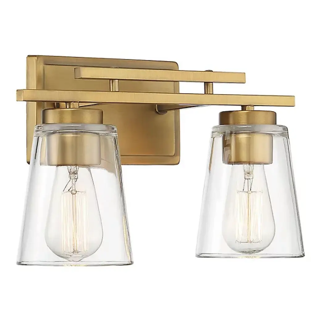 An elegant combination of glass and metal for a modern look that doesn’t compromise on durability. Give your bath space the lighting it deserves with the Calhoun Vanity Light by Savoy House. It features clear tapered glass shades, which are mounted on a pair of horizontally parallel rods attached to the rectangular wall plate. This bath bar can be placed adjacent to vanity mirrors or at the entrances to bathroom areas with tall ceilings to fill the vicinity with a soothing glow of light at a suitable brightness. The shades are reversible, which means they can be mounted facing upward or downward, whichever works best with the setting.