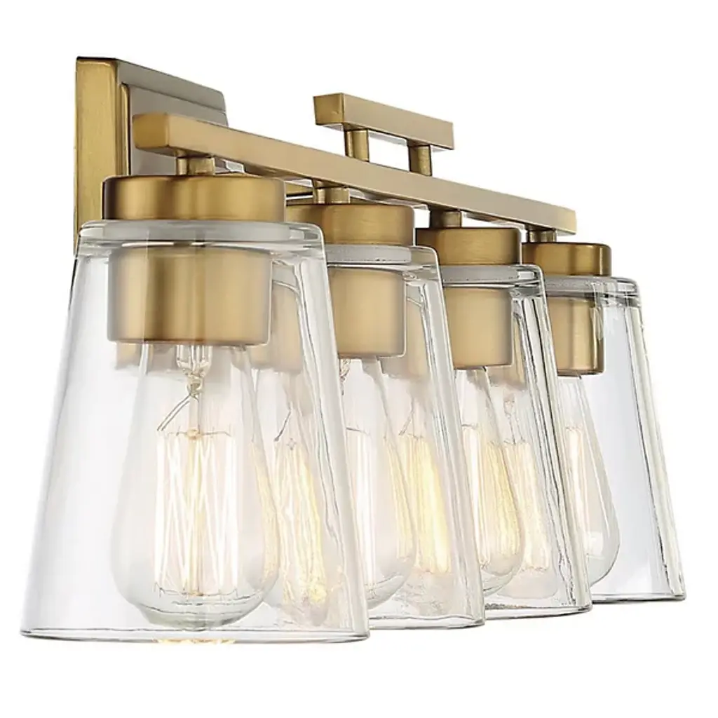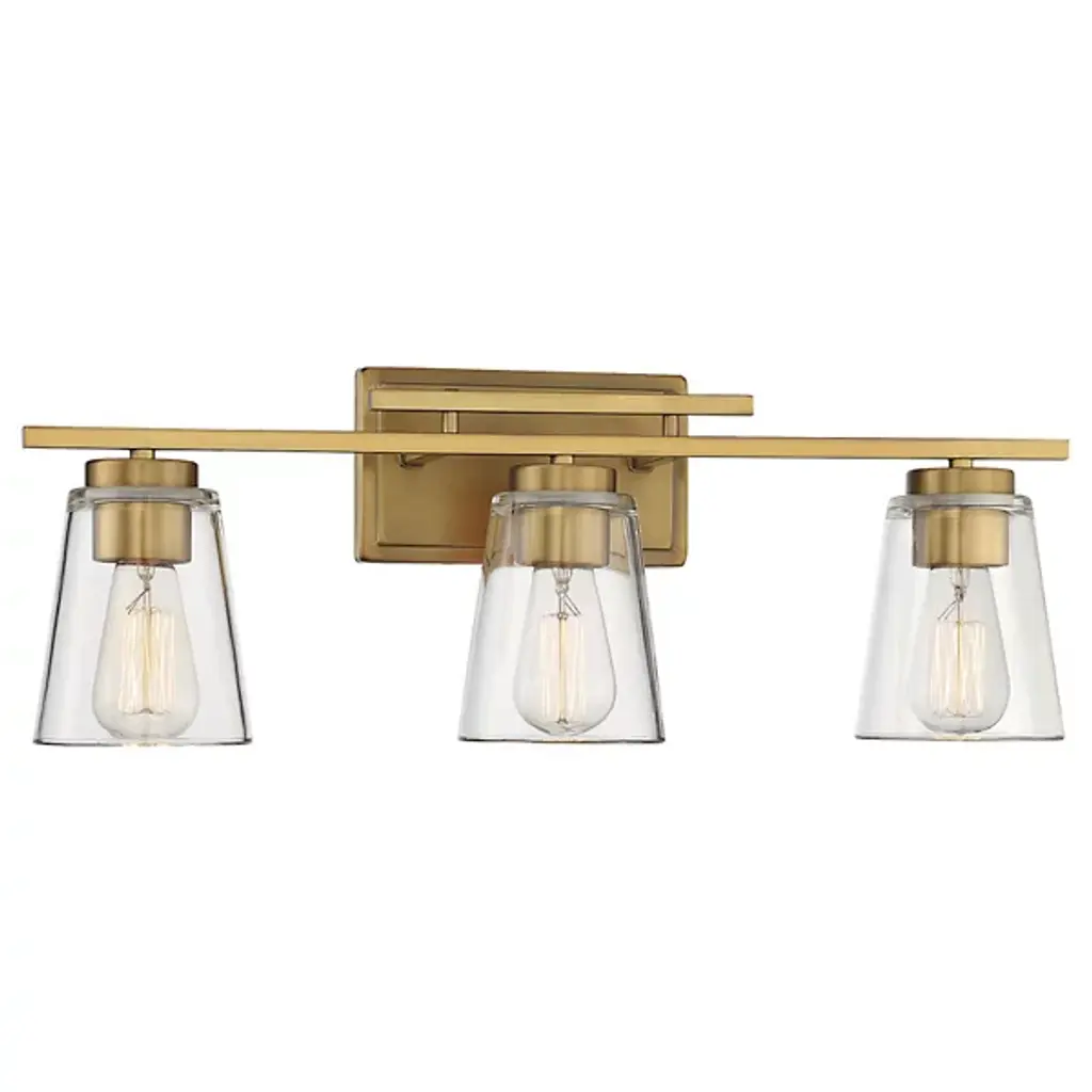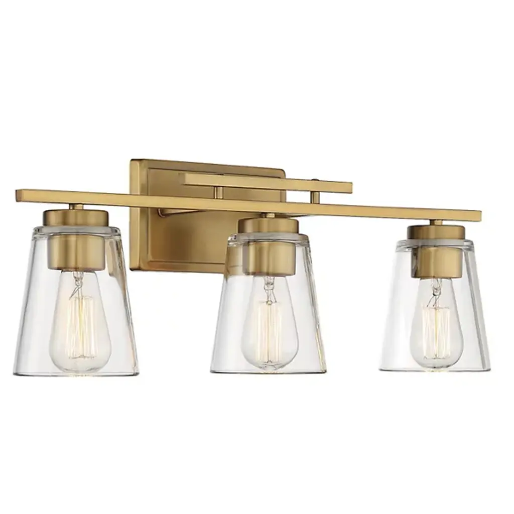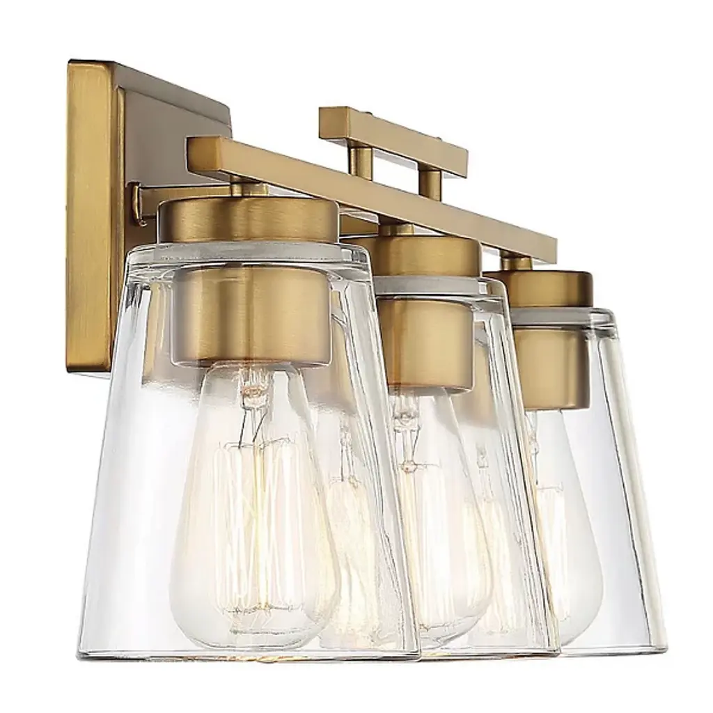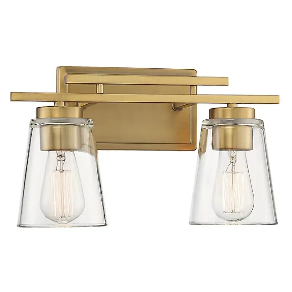 An elegant combination of glass and metal for a modern look that doesn’t compromise on durability. Give your bath space the lighting it deserves with the Calhoun Vanity Light by Savoy House. It features clear tapered glass shades, which are mounted on a pair of horizontally parallel rods attached to the rectangular wall plate. This bath bar can be placed adjacent to vanity mirrors or at the entrances to bathroom areas with tall ceilings to fill the vicinity with a soothing glow of light at a suitable brightness. The shades are reversible, which means they can be mounted facing upward or downward, whichever works best with the setting.