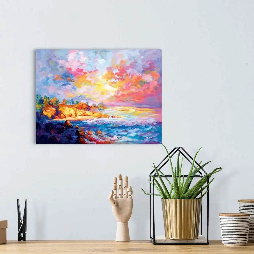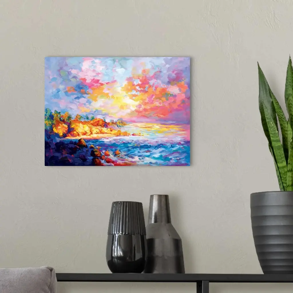 Impressionist painting of a beautiful coast in Southern California.