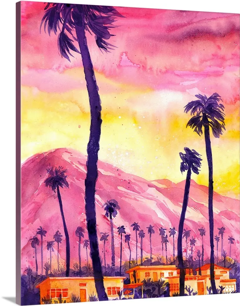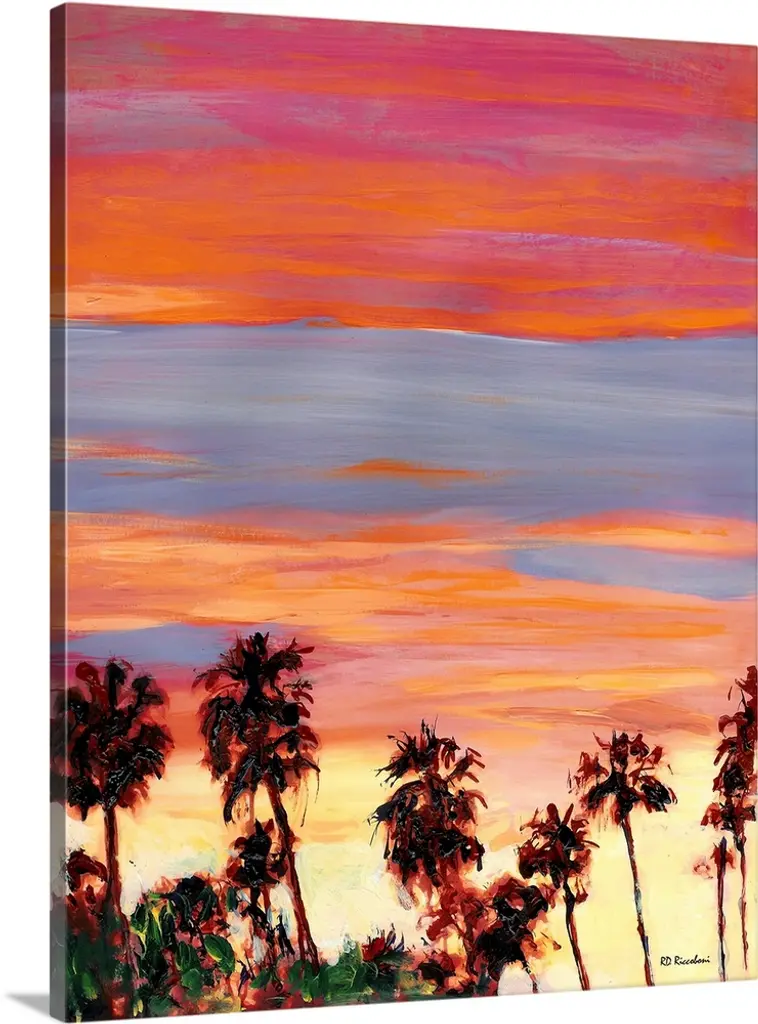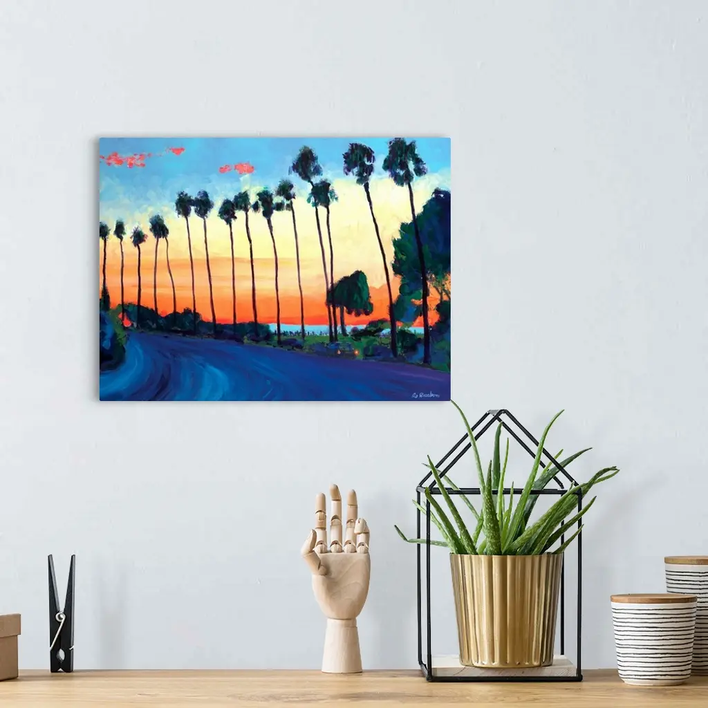 Painting of Coast Boulevard and Scripps Park at Sunset in La Jolla Cove.