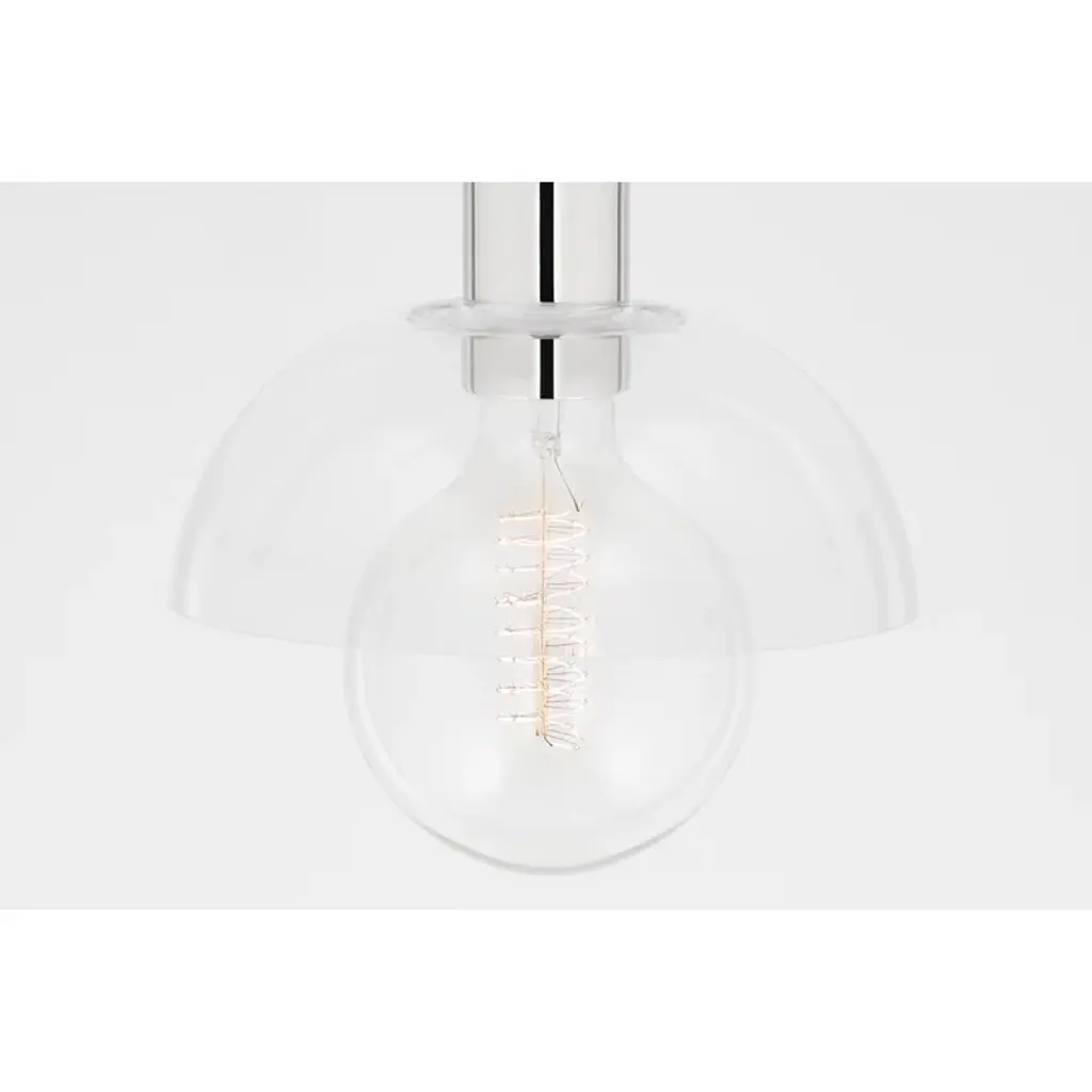 Globe bulbs peek from beneath dome glass shades to give this sleek fixture a vintage vibe. The light shines through the clear glass shade of the sconce, semi-flush, and pendant while the opal glossy shade of the bath and vanity fixture gives off a softer glow.
