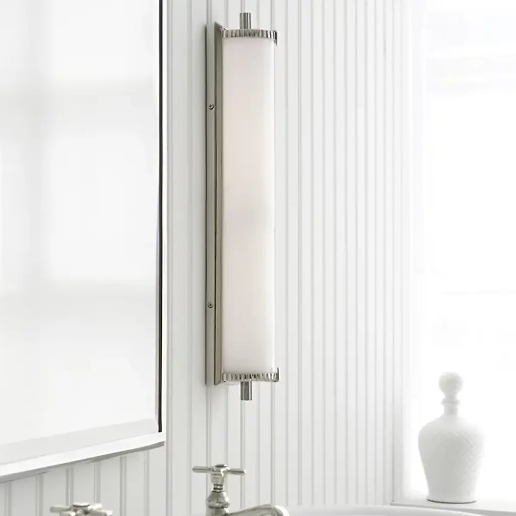 The Calliope Vanity Light by Visual Comfort Signature, formerly known as Visual Comfort, will add glamour and style to your vanity with a refined yet detail-oriented design. Unique finials and trim on the White glass shade reveal the craftsmanship inherent to this piece. The semi-cylindrical shade smoothly and evenly distributes light to the room.