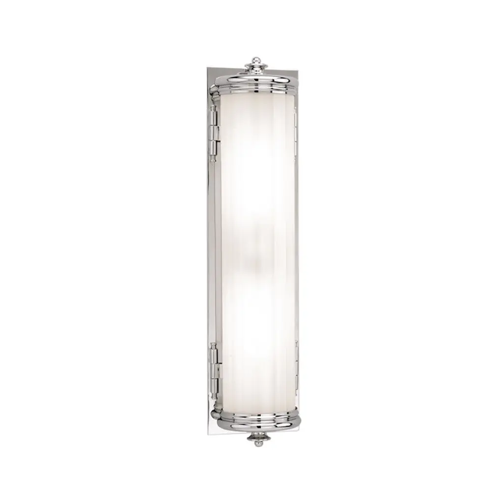 The Calliope Vanity Light by Visual Comfort Signature, formerly known as Visual Comfort, will add glamour and style to your vanity with a refined yet detail-oriented design. Unique finials and trim on the White glass shade reveal the craftsmanship inherent to this piece. The semi-cylindrical shade smoothly and evenly distributes light to the room.
