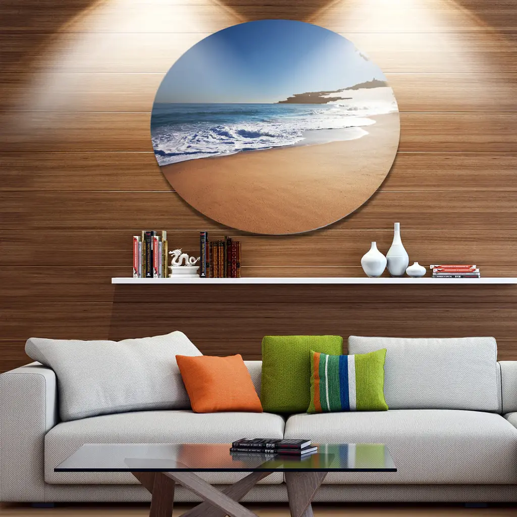 Calm Blue Beach Under Bright Sun, Seashore Round Wall Art, 11"
