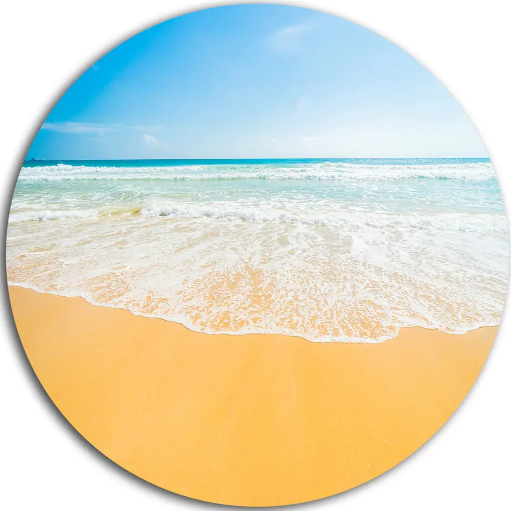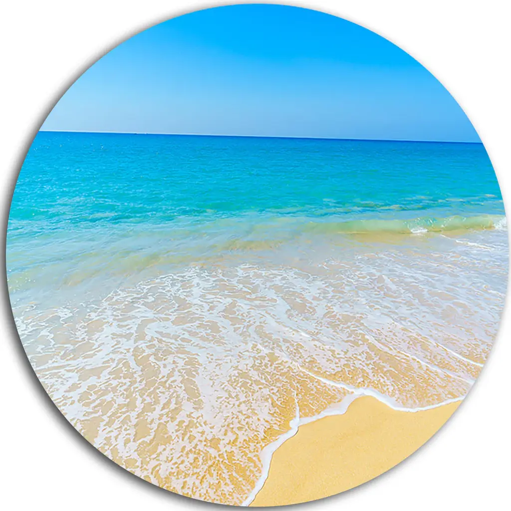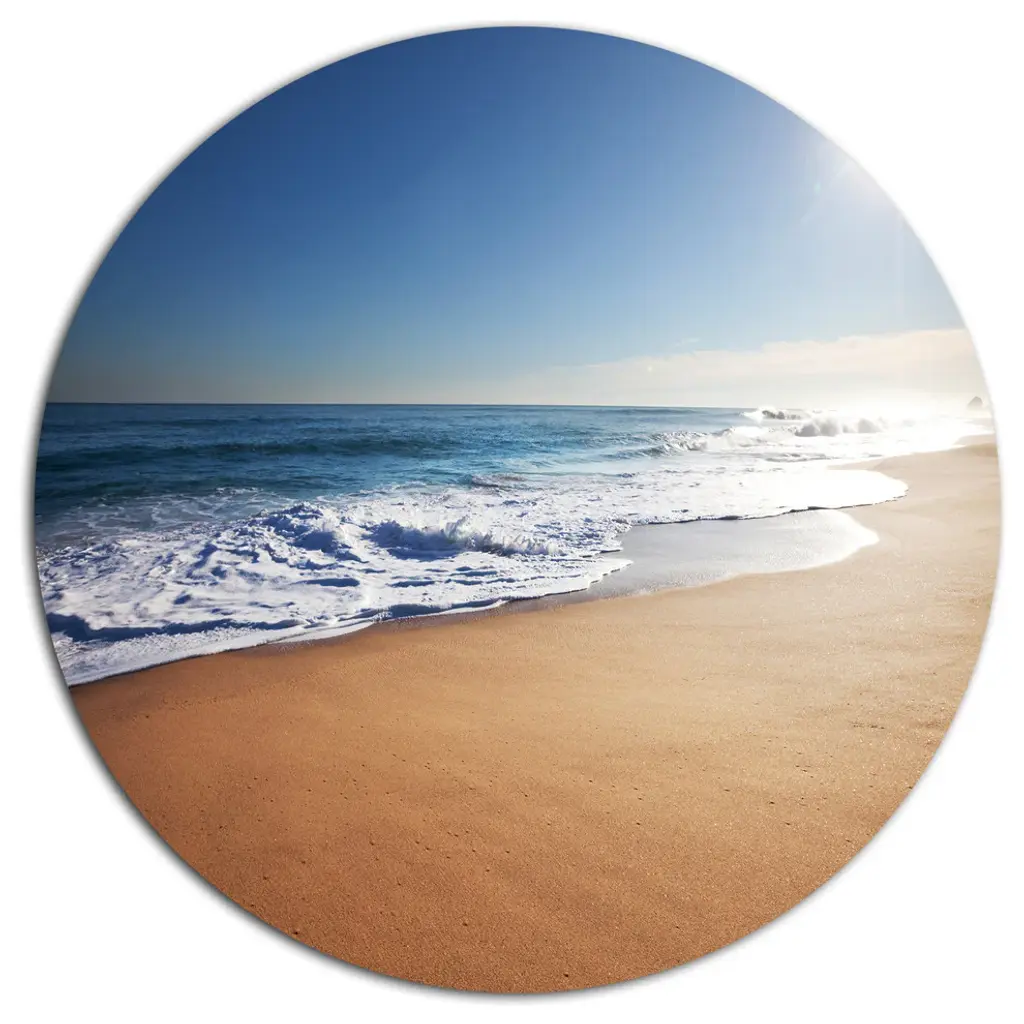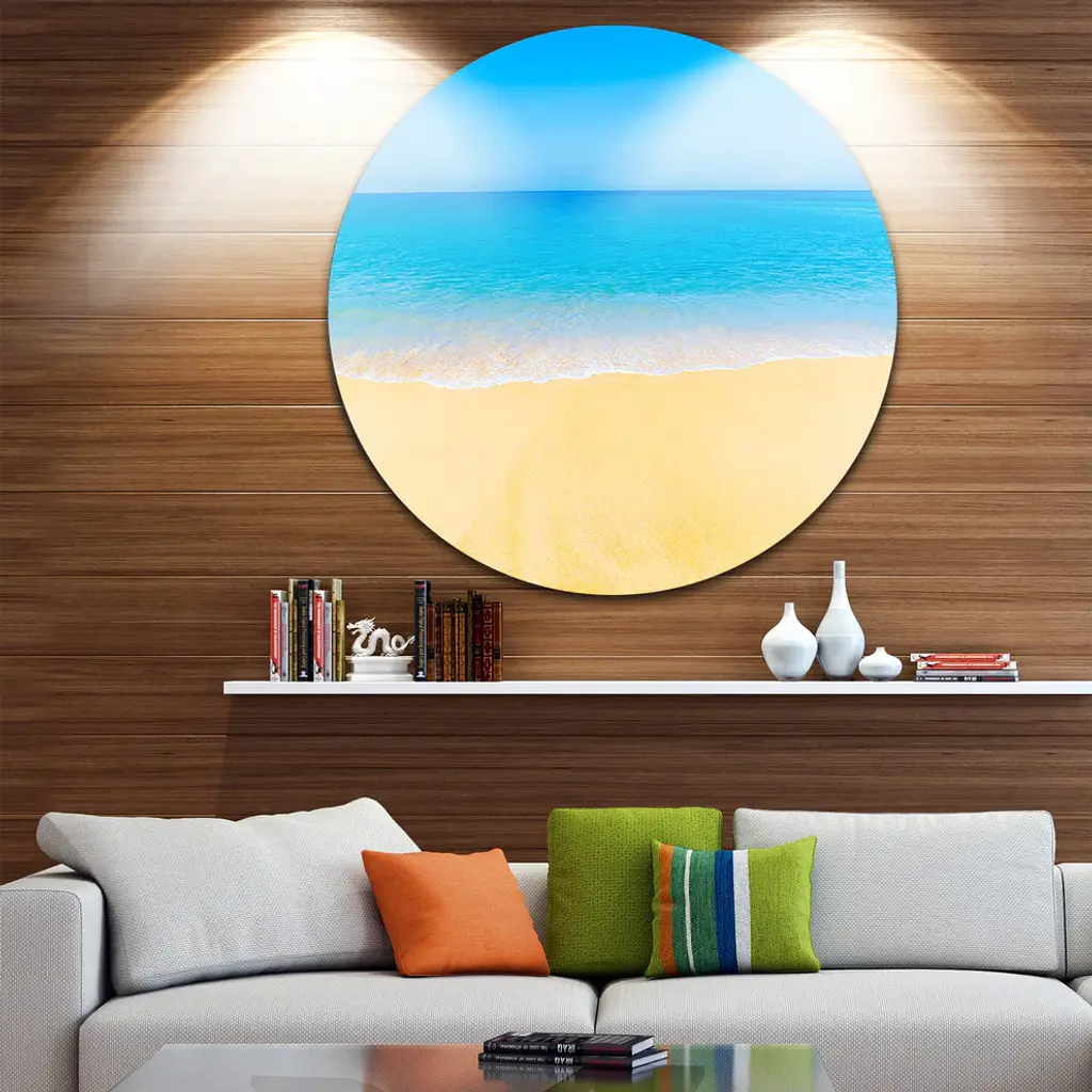 Bring Contemporary Abstraction to your home with this large Circle Metal wall art. This Calm Blue Sea and Sky Metal Artwork makes it the focal point of any room or office. - White Gloss Coating ensures colors are extra vibrant with light reflection.- Aluminum grade Sheet Metal with 1 inch mounting frame on the back giving the illusion that the artwork is floating on the wall..- Mounting Brackets are included along with instructions.- High Quality Digital images are created directly into a glossy aluminum panel producing a stunning and captivating print into the glossy finish of the metal.- Water, Fire and Scratch resistant HD Aluminum panels.- Looks better than any photo paper and guaranteed to last at least 20 years- Easy to clean with a microfiber cloth. Colors are far superior to regular Canvas Art. - Easy to Hang