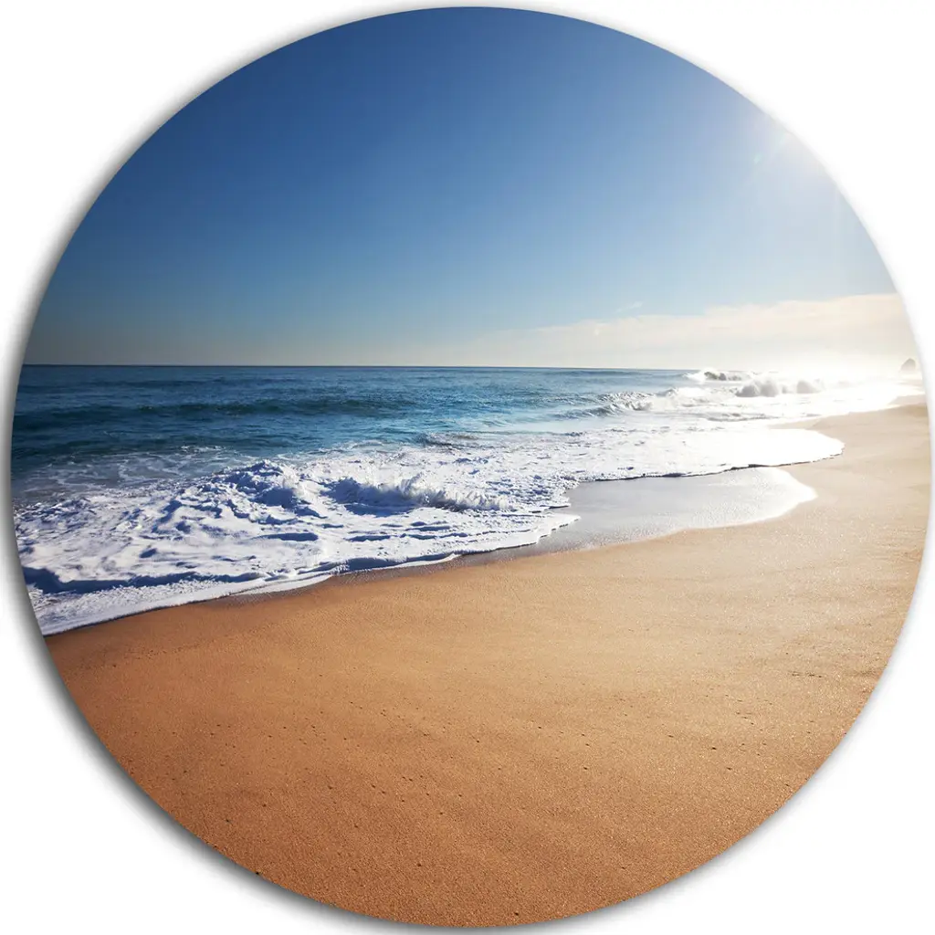 Calm Blue Seashore With White Sun, Seashore Disc Metal Wall Art, 23"