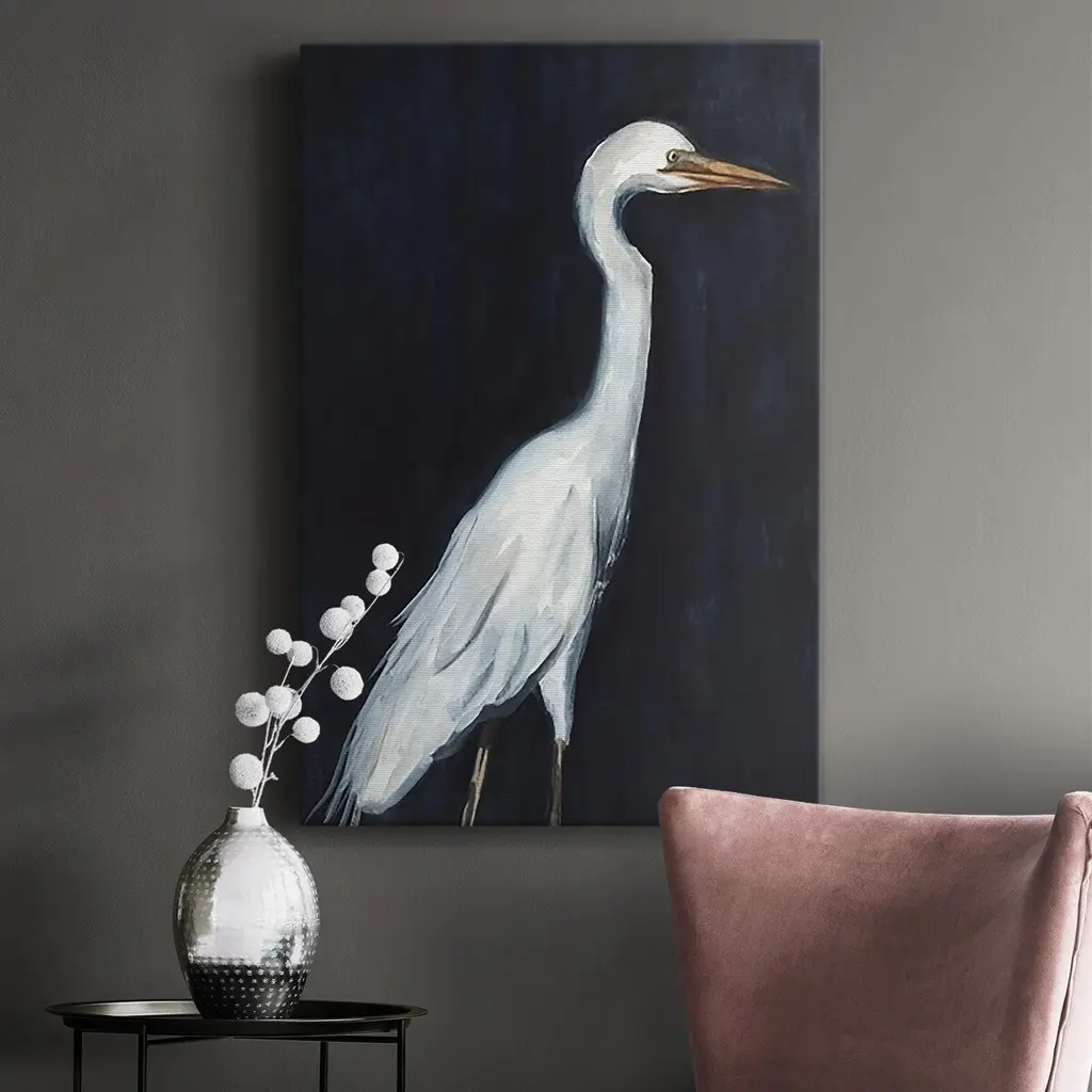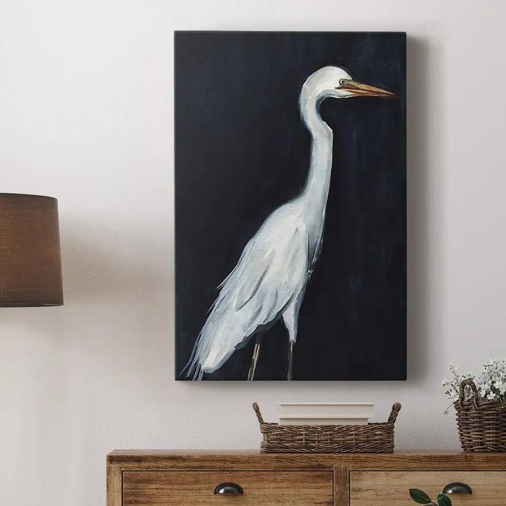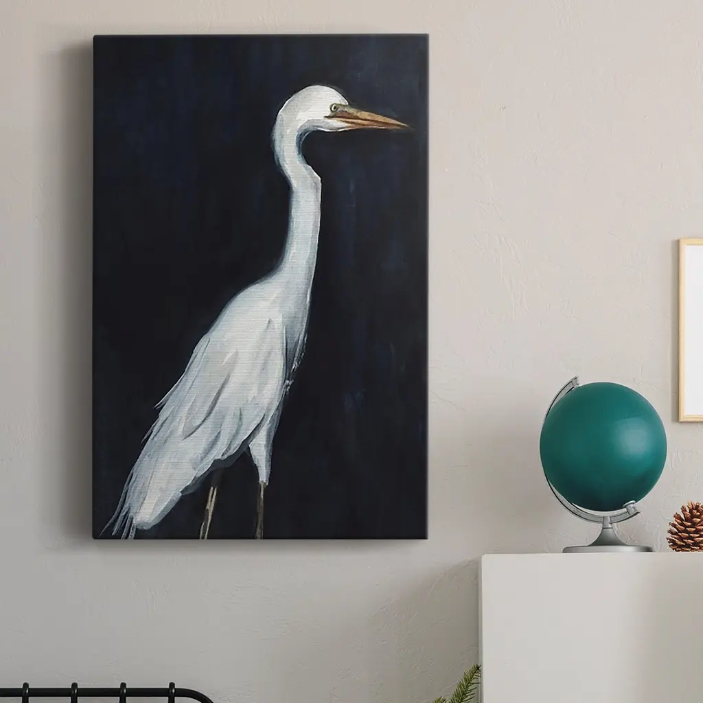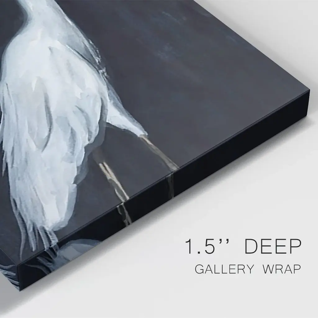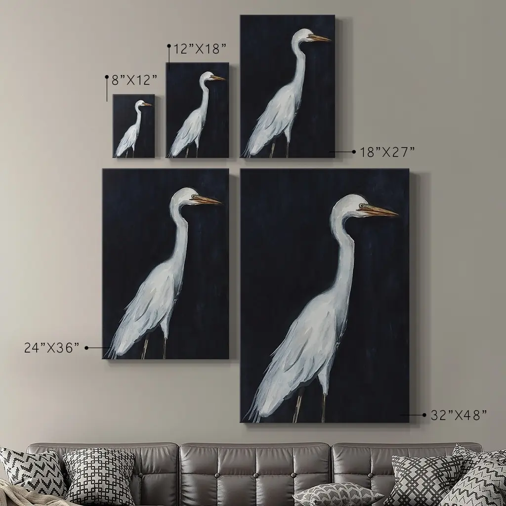 Calm Great Egret II Premium Gallery Wrapped Canvas - Ready to Hang A premium hand stretched gallery wrapped canvas print created to last. Featuring a beveled a solid wood stretcher bar, each piece comes ready to hand 6 SIZES AVAILABLE 8''X12'' - Overall Size 12''X18'' - Overall Size 18''X27'' - Overall Size 24''x36'' - Overall Size 32''x48'' - Overall Size 40''x60'' - Overall Size Each piece is made to order. Built to Last Each piece comes ready to hang Solid wood stretcher Fade and Water resistant Made domestically