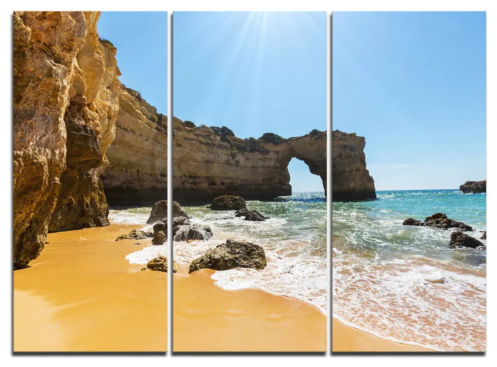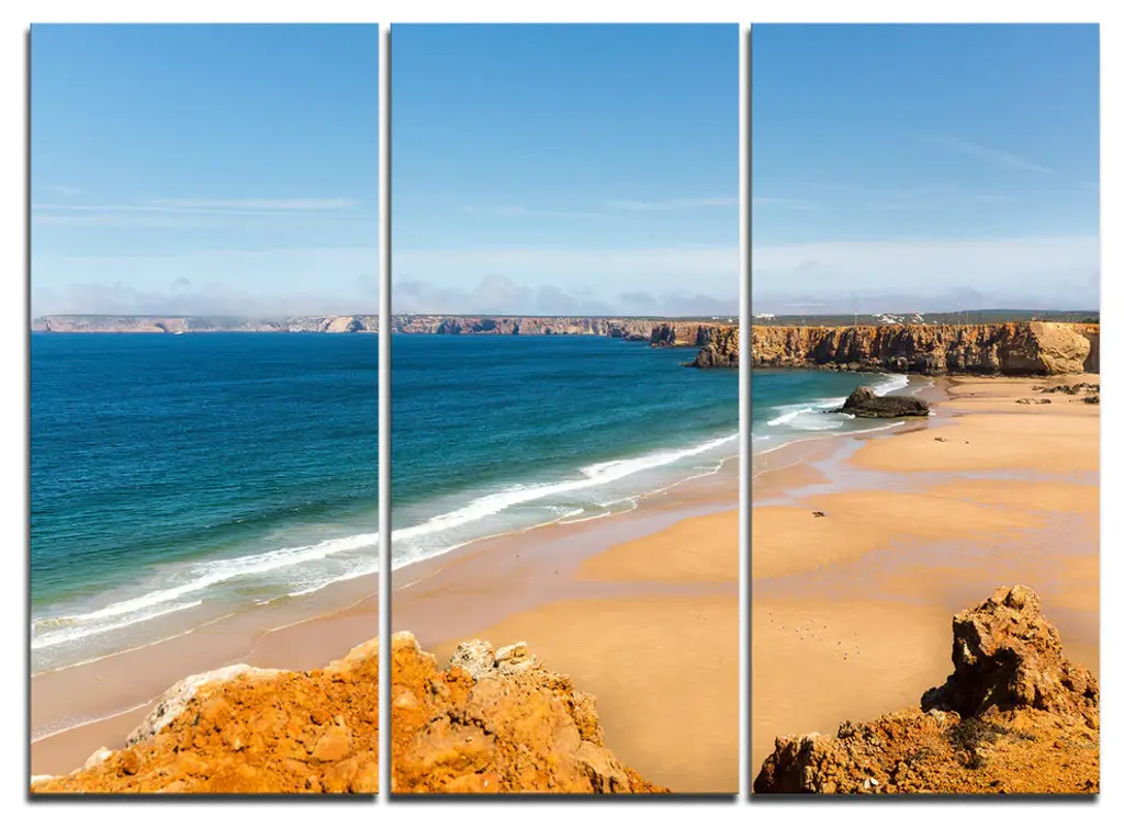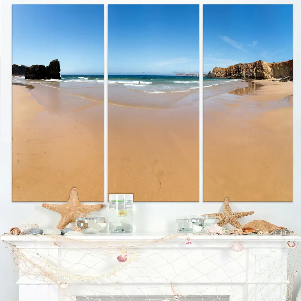 "Calm Sandy Coastline Panorama" Metal Wall Art, 3 Panels, 36"x28"