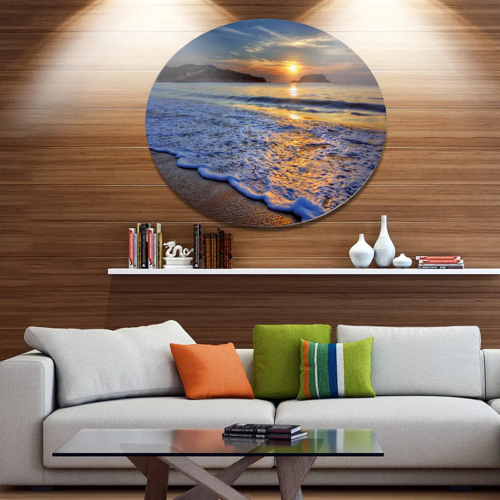 Calm Seashore With Blue Waves, Seashore Art Round Metal Wall Art, 23"
