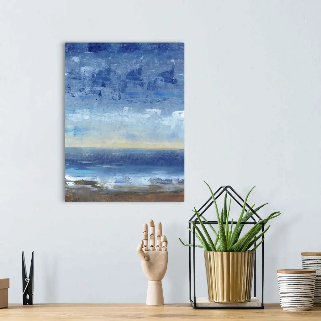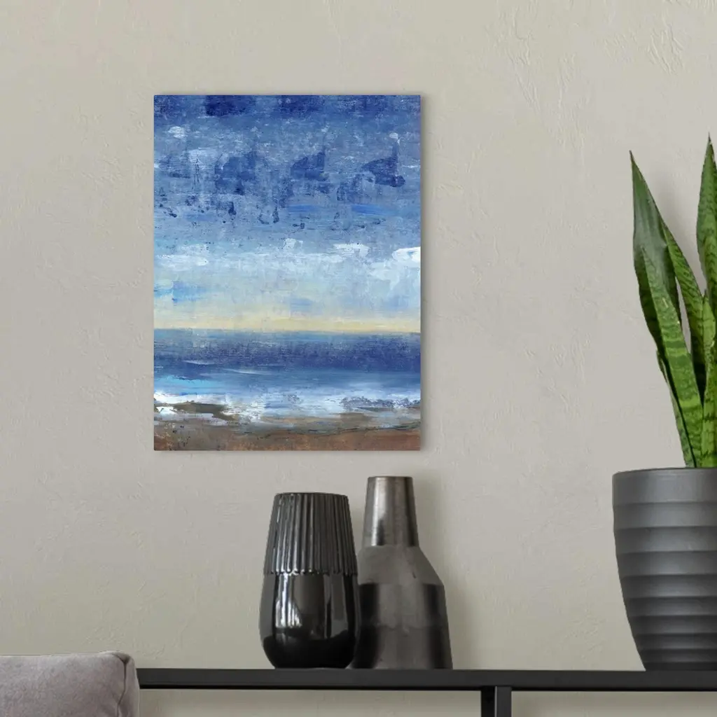 Contemporary painting of a coastal vista in the evening.