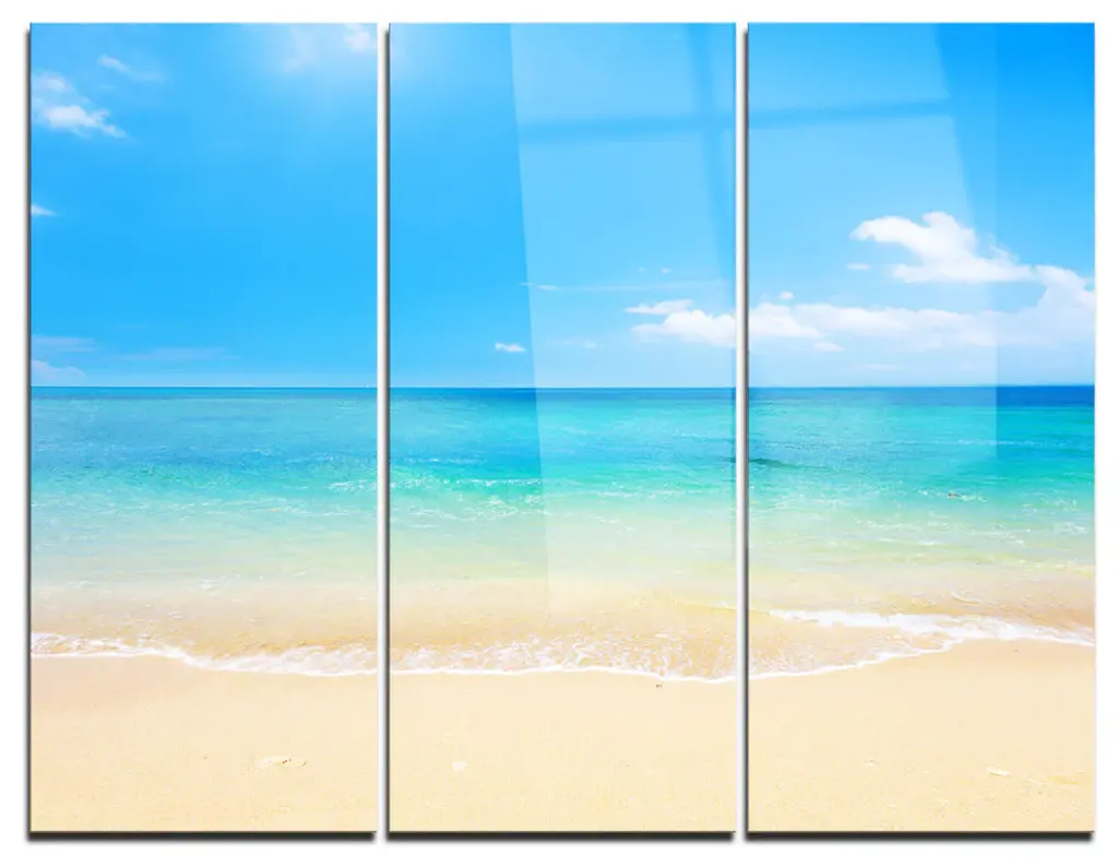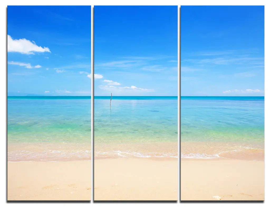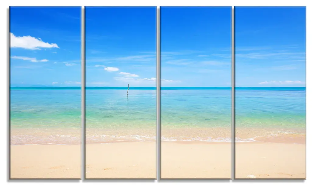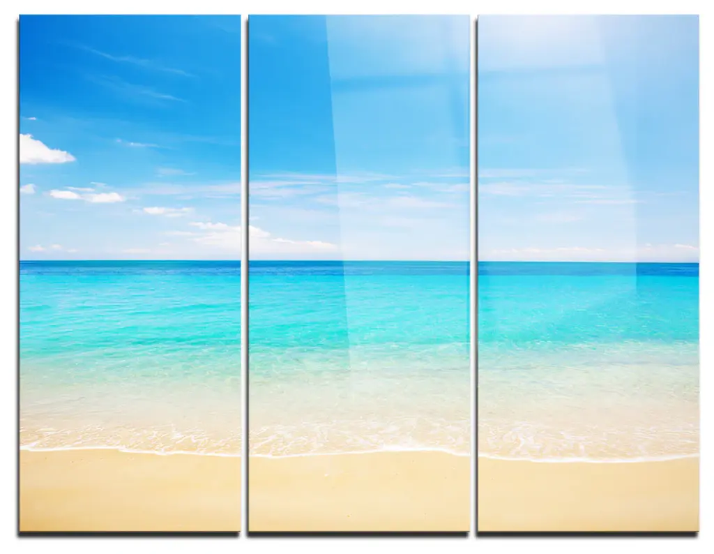 "Calm Waves At Tropical Beach" Seashore Canvas Photo Print, 4 Panels, 48"x28"