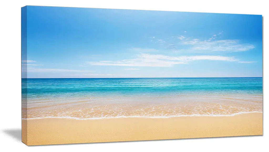 The Calm Waves at Tropical Beach canvas art print is sure to make an impression on anyone who sees it. This artwork is gallery wrapped around a 1-inch solid wood frame and arrives carefully packaged and entirely ready to hang on the wall. Design Art only uses the highest resolution and pigments to ensure a crisp colorful print that is never faded or pixelated. This artwork is sure to be a conversation starter in any home or office.