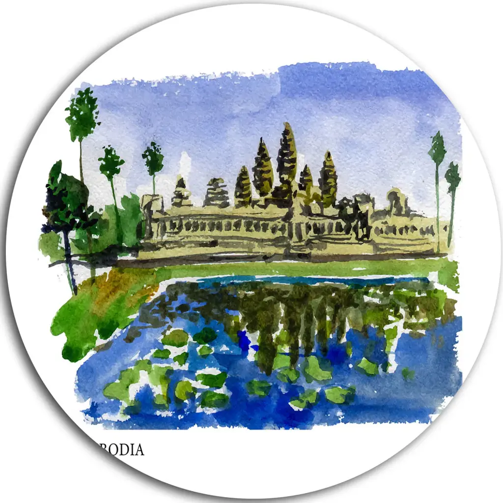 Bring contemporary abstraction to your home with this large 36W x 28H Metal Wall Art. This Cambodia Vector Illustration Metal Artwork makes it the focal point of any room or office. - White gloss coating ensures colors are extra vibrant with light reflection.- Aluminum grade sheet metal with 1-inch mounting frame on the back giving the illusion that the artwork is floating on the wall.- Mounting brackets are included along with instructions.- High quality digital images are created directly into a glossy aluminum panel producing a stunning and captivating print into the glossy finish of the metal.- Water, fire and scratch resistant HD aluminum panels.- Looks better than any photo paper and guaranteed to last at least 20 years- Easy to clean with a microfiber cloth. Colors are far superior to regular canvas art. - Easy to hang