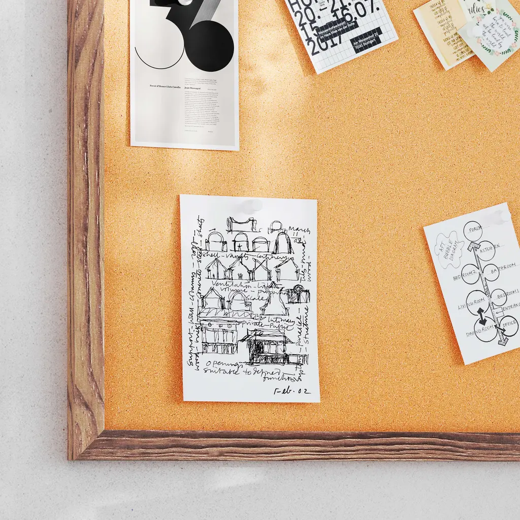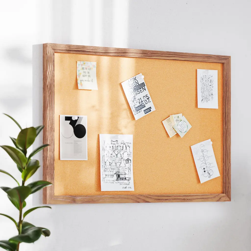 Add a bit of rustic charm and functionality to your home, office or classroom with this Rustic Wall Mount Cork Board. With its solid pine wood frame, it not only provides a stylish touch but is also sturdy and durable. Use the included wood push pins to secure your notes, photos, or artwork, or let it stand alone as a piece of decorative wall art. The cork board is easy to hang, either vertically or horizontally with the inlayed hanging hardware. This makes it a versatile addition to any space, providing an easily accessible place for communication or showcasing sentimental items. Whether it's a shopping list, a reminder, or a child's masterpiece, this board is perfect for displaying it in style.