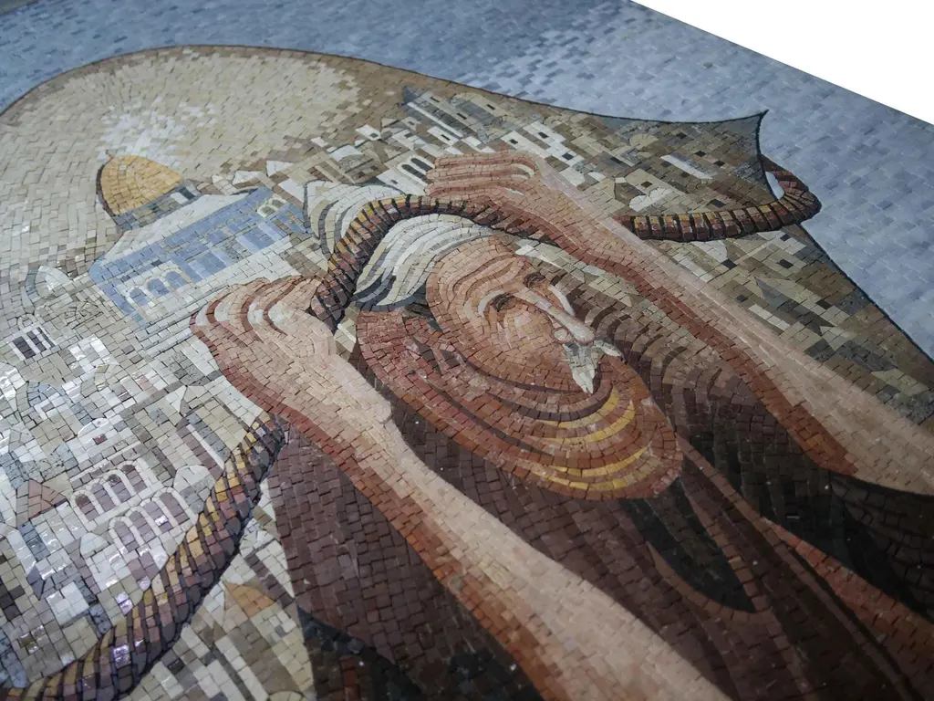 Experience the profound artistry of resilience and heritage with the "Camel of Hardships Sliman Mansour Mosaic Art." This masterpiece is not just a decoration; it's a narrative woven into every tile, reflecting the spirit of endurance and hope that defines the Palestinian experience. Created by the renowned artist Sliman Mansour, this mosaic serves as a poignant reminder of the resilience that emerges in the face of adversity.Each piece of the "Camel of Hardships" is meticulously handcrafted by skilled artisans, ensuring that every detail is captured with precision and care. The artwork features a striking depiction of an elderly Palestinian man, symbolizing the weight of heritage he carries—his story intertwined with the land he loves and the eternal struggles faced by his people. The mosaic beautifully incorporates elements that represent the iconic Al-Aqsa Mosque, grounding the piece in the rich history and cultural significance of Jerusalem.Sliman Mansour's Mosaic Art shines not only as a visual feast but also as a meaningful symbol of unwavering determination and faith. The vibrant colors and intricate patterns invite viewers to reflect on the stories of strength and perseverance represented in Palestinian culture. This artwork is perfect for those who appreciate art with depth and significance, transforming any space into a conversation starter and a reminder of the beauty that arises from hardship.Invest in a piece of history and hope with the "Camel of Hardships Sliman Mansour Mosaic Art." This stunning decoration elevates your home or office décor while celebrating a powerful narrative. Let this mosaic inspire you and those around you, honoring the enduring spirit of a people whose story is rich in beauty, struggle, and hope. Perfect for art lovers, collectors, or anyone looking to add a touch of meaningful elegance to their environment. Embrace the artistry of Sliman Mansour and become a part of the story today.