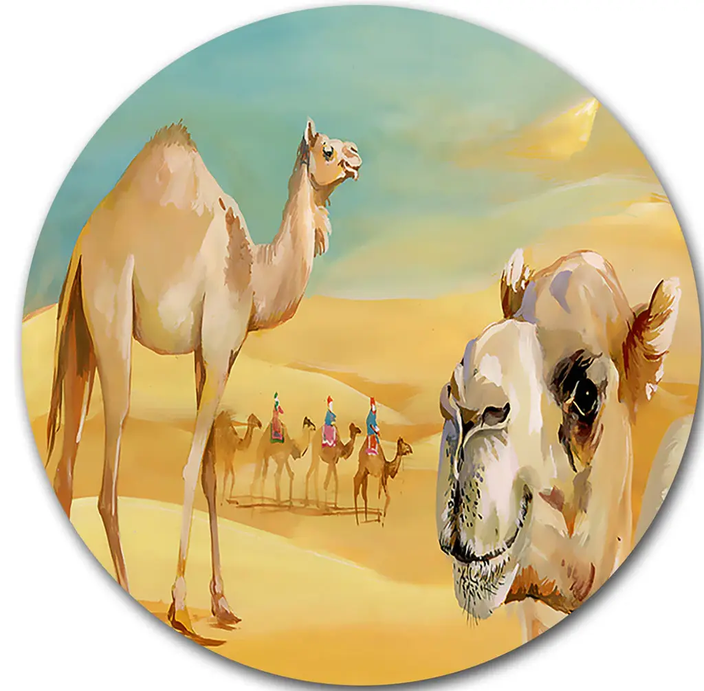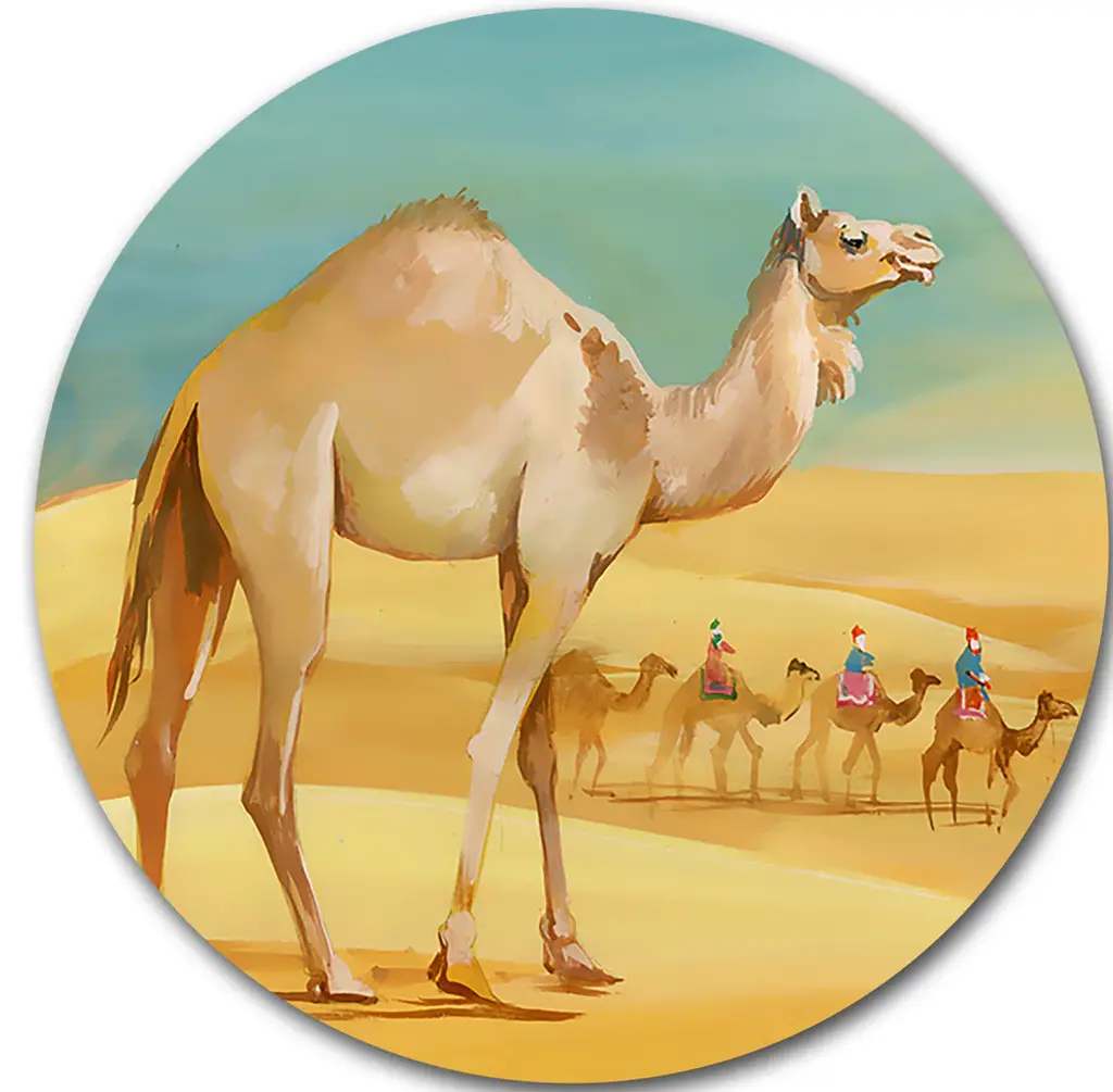 The Camel Walking in Desert canvas art print is sure to make an impression on anyone who sees it. This artwork is gallery wrapped around a 1-inch solid wood frame and arrives carefully packaged and entirely ready to hang on the wall. Design Art only uses the highest resolution and pigments to ensure a crisp colorful print that is never faded or pixelated. This artwork is sure to be a conversation starter in any home or office.