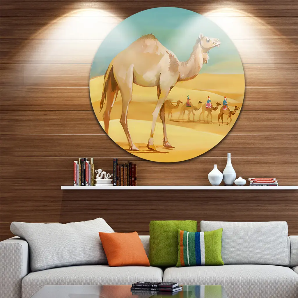 Camel Walking In Desert, Watercolor Animal Round Wall Art, 23"