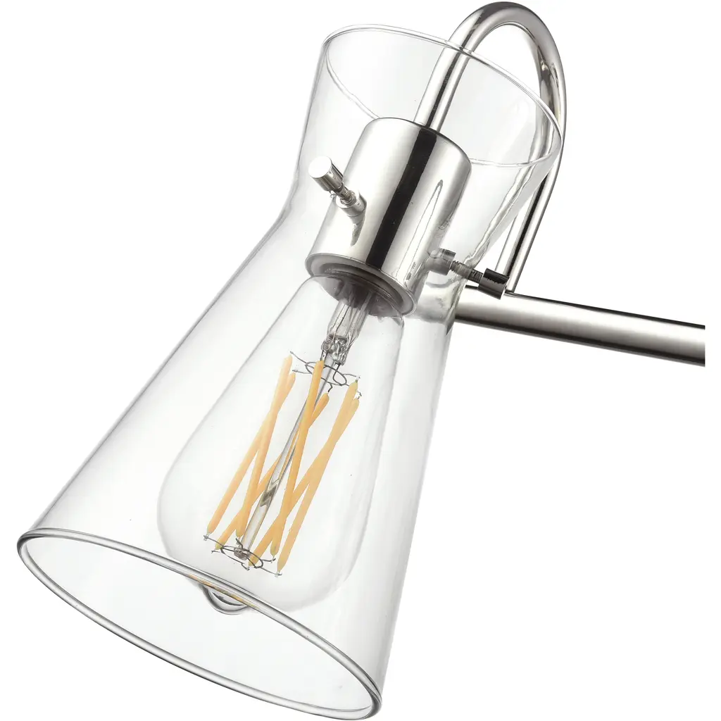 Distinctive beaker-shaped clear glass shades define the look of the Camellia Family of vanity lighting and provide these fixtures with a thoroughly unique appeal. Featuring graceful swan-neck arms finished in polished nickel, modern gold, brushed nickel, or matte black, these fixtures are available as 2-, 3-, or 4-light options. They are the perfect design-forward solution for any bath motif from ultra-modern to farmhouse
