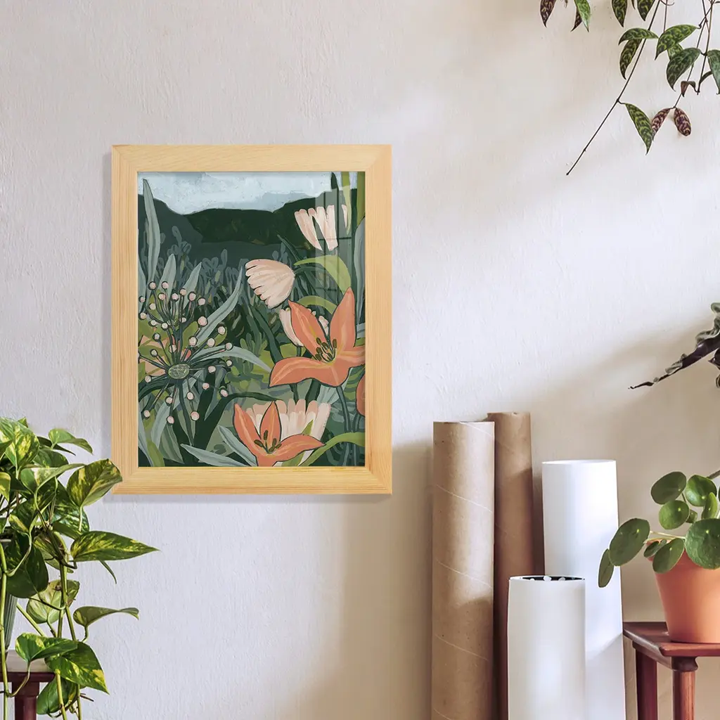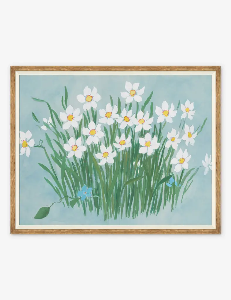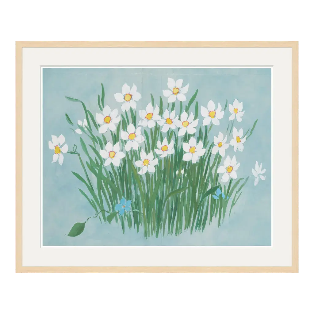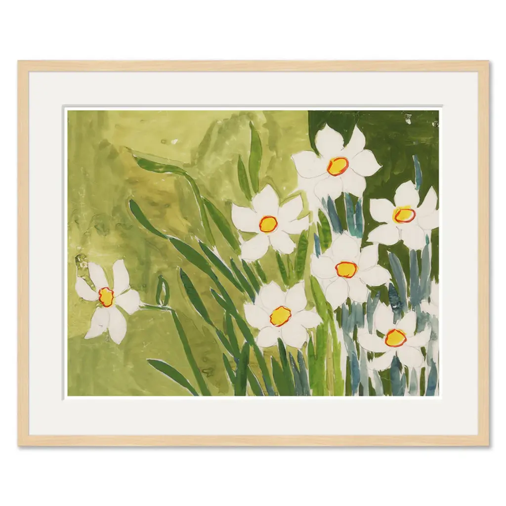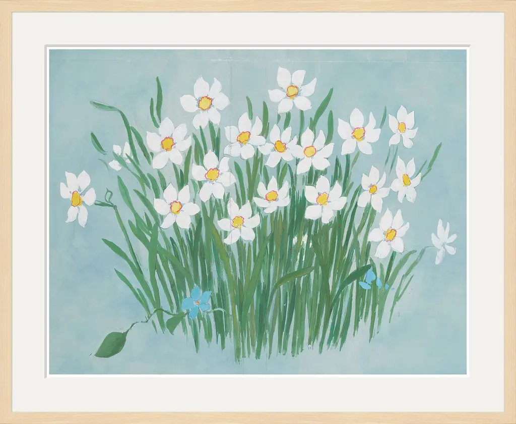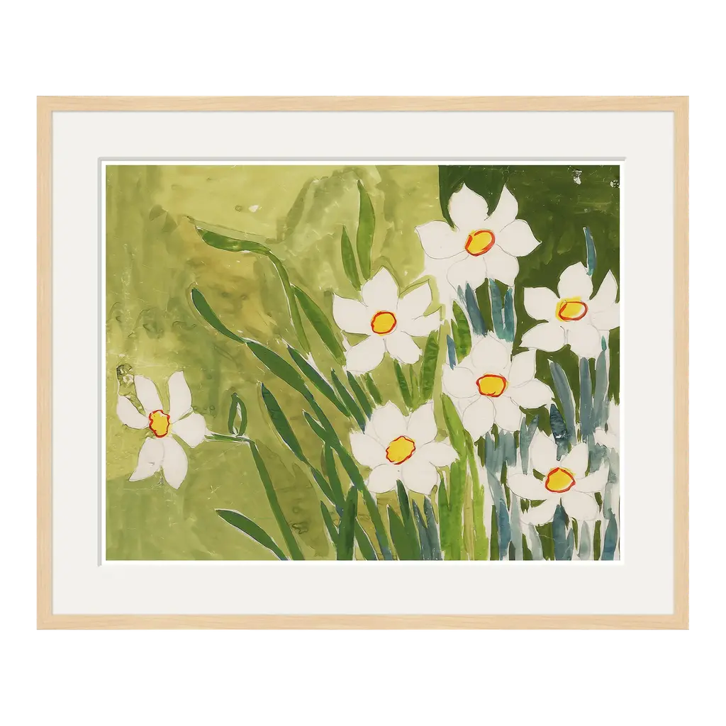 Elevate your wall decor with the iconic work of textile artist, engraver, and painter Paule Marrot. Each print captures her simple, lyrical style with boldness and fidelityoffering wall art with a fresh yet enduring appeal. With its tidy bunch of camellia flowers, this minimalist composition offers a bright addition to a living space or bedroom.
