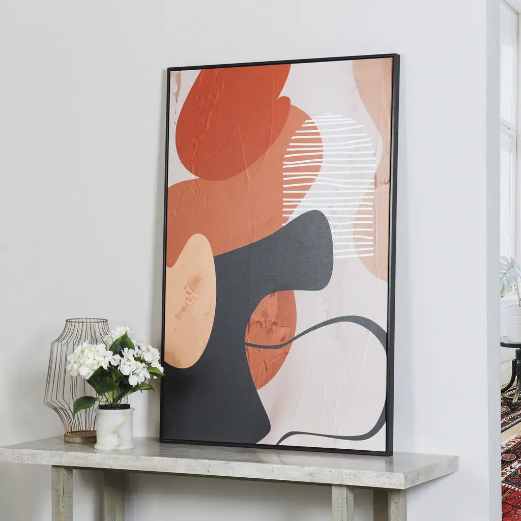 Let this wall art instantly transform your living room or bedroom into an inspiring oasis. The high definition print on canvas presents an abstract design, perfect for adding a unique touch to any office, foyer, or dining room. Encased in a PS frame, this artwork is ready to infuse your space with sophistication.