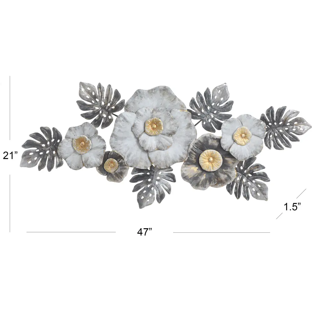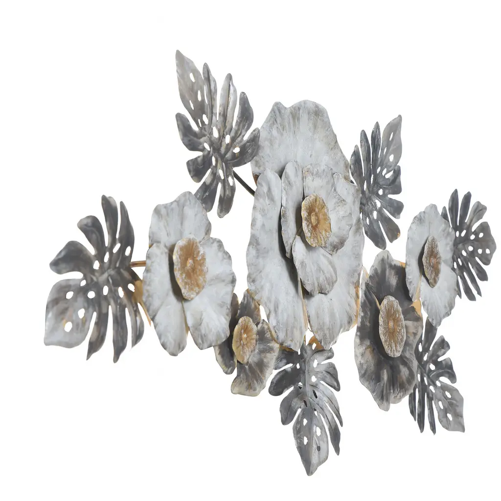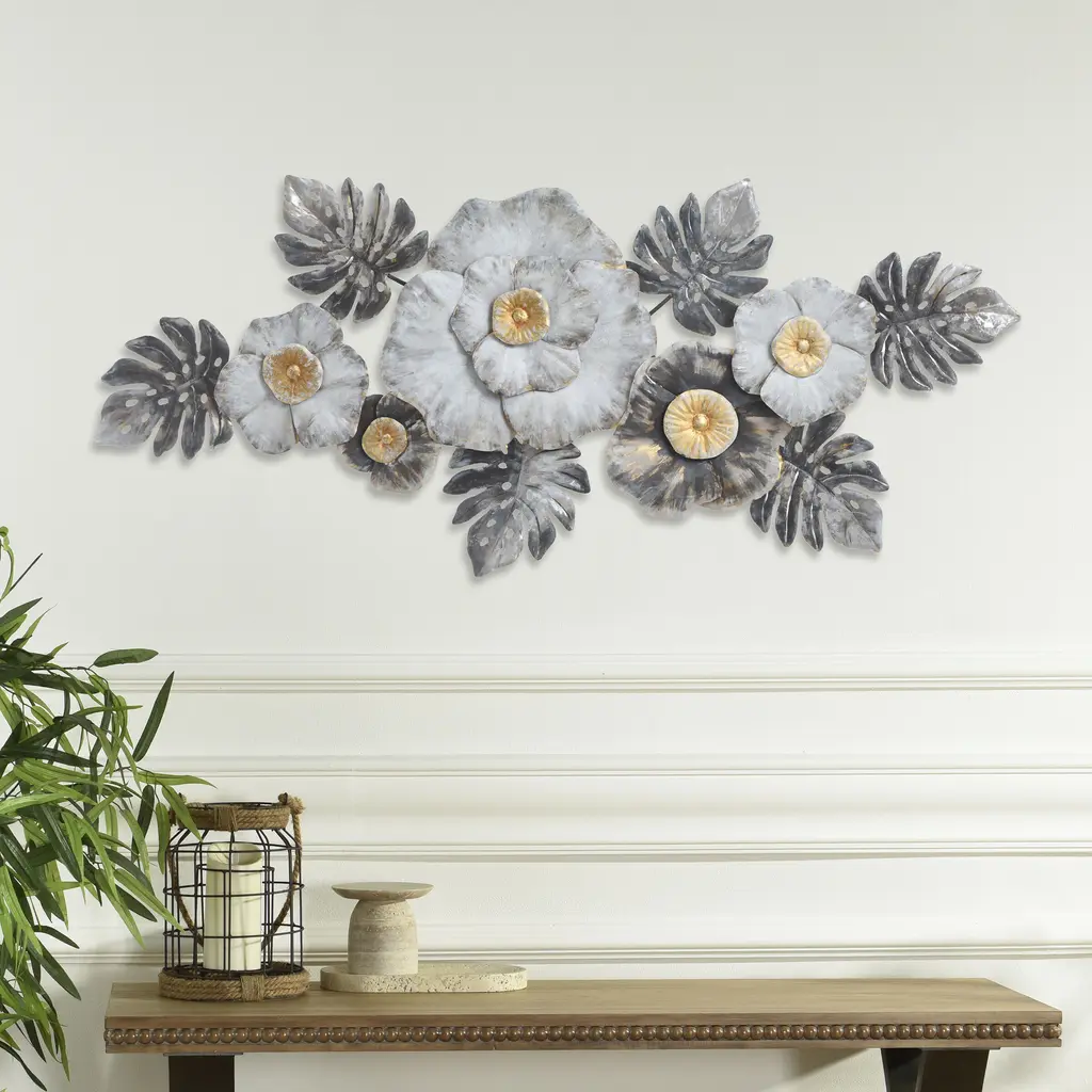 This floral metal wall art is a unique statement piece, perfect for creating a focal point in any room. Handcrafted from iron, it has a depth and richness that adds character to your space. Its horizontal orientation makes it an ideal addition to your living room, bedroom, or office setup. The unique design will give your foyer, dining room, or bathroom a distinctive touch.