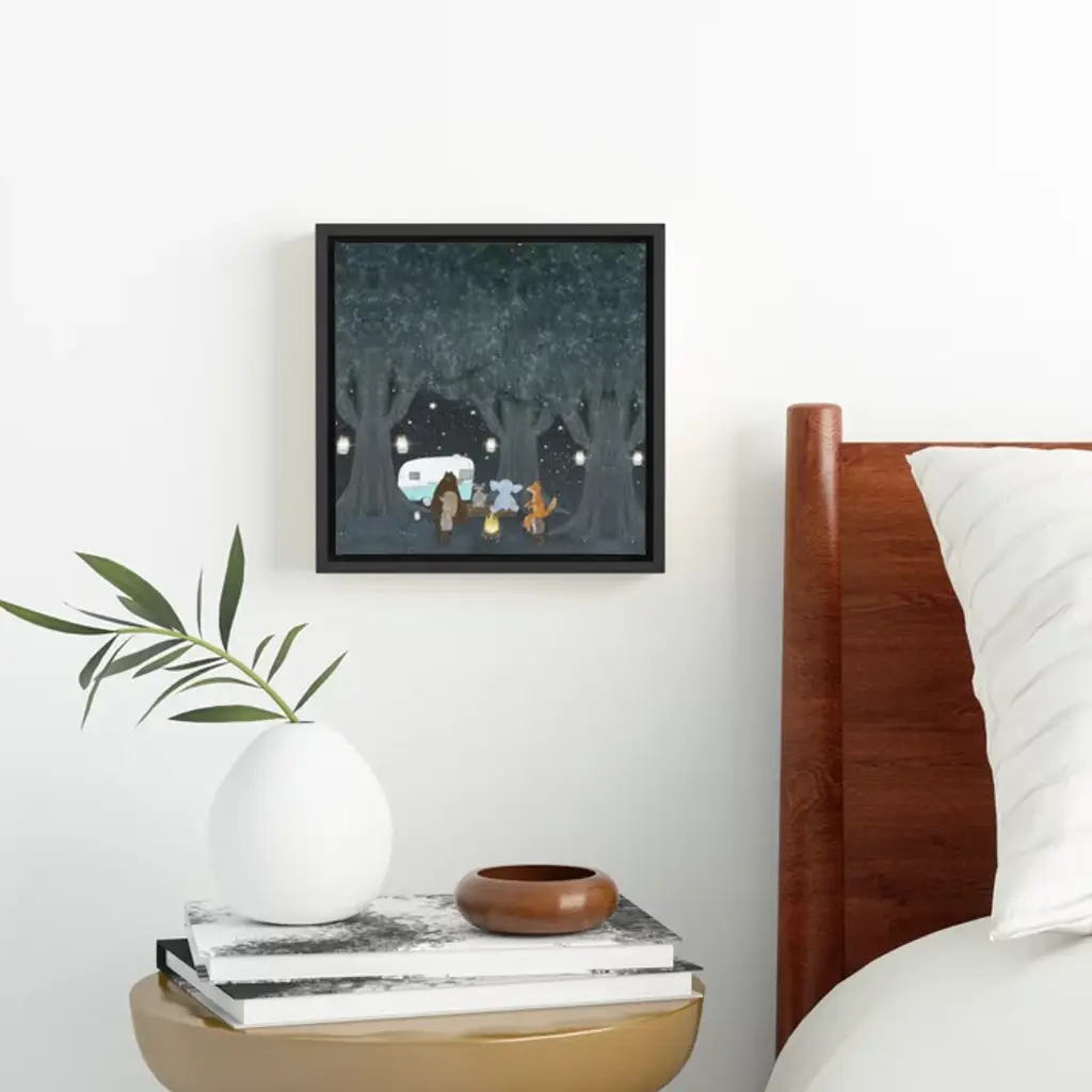 Bright white, fine cotton-poly blend matte canvas.Gallery quality ink is used to ensure saturation for a rich and deep print.Hand-stretched canvas over pine stretcher bars. Framed Canvas Art Prints include hanging hardware. Made in the USA.We're committed to creating beautiful art while respecting our planet:Eco-friendly, acid-free paper.Packaging made from recycled materials.Locally produced in the USA to reduce transportation emissions.SHIPPING: Items are made to order and typically ship within 3-4 business days. Click here for more information about delivery options.RETURNS: Return requests can be made within 30 days of your item(s) delivery. Click here for more information on returns.