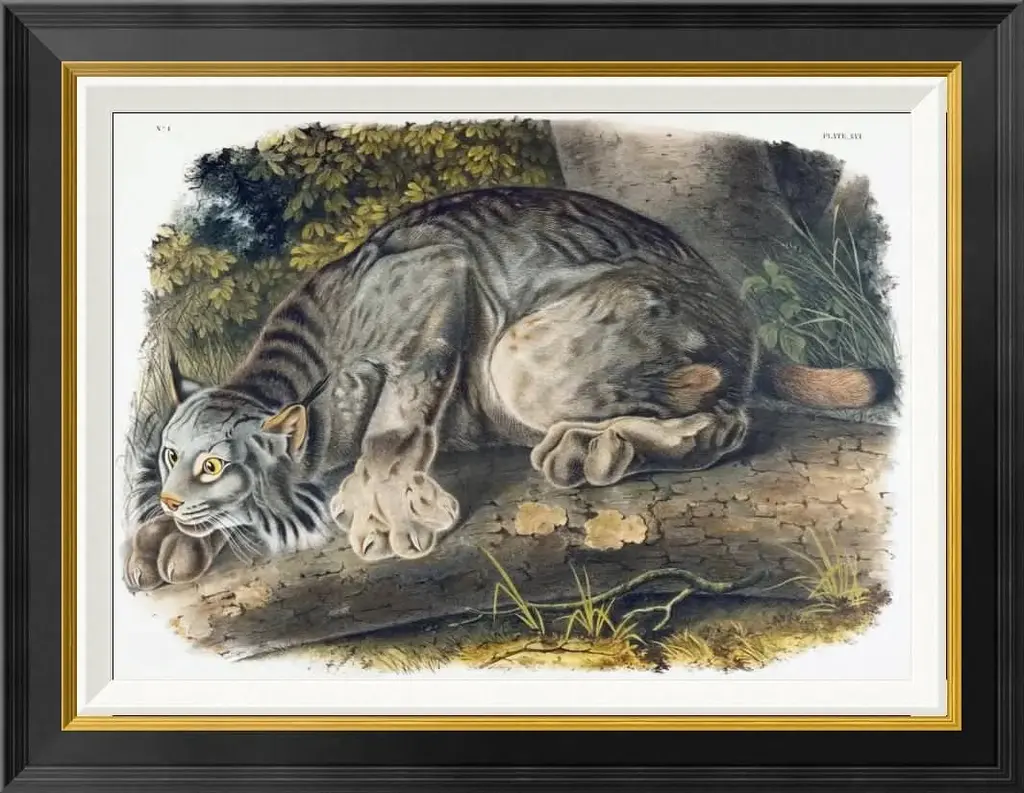 "Canada Lynx" Framed Canvas Giclee By John James Audubon, 28x22"