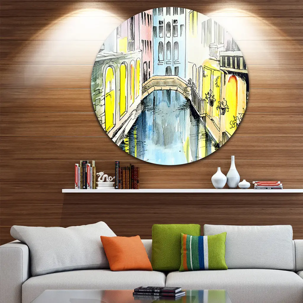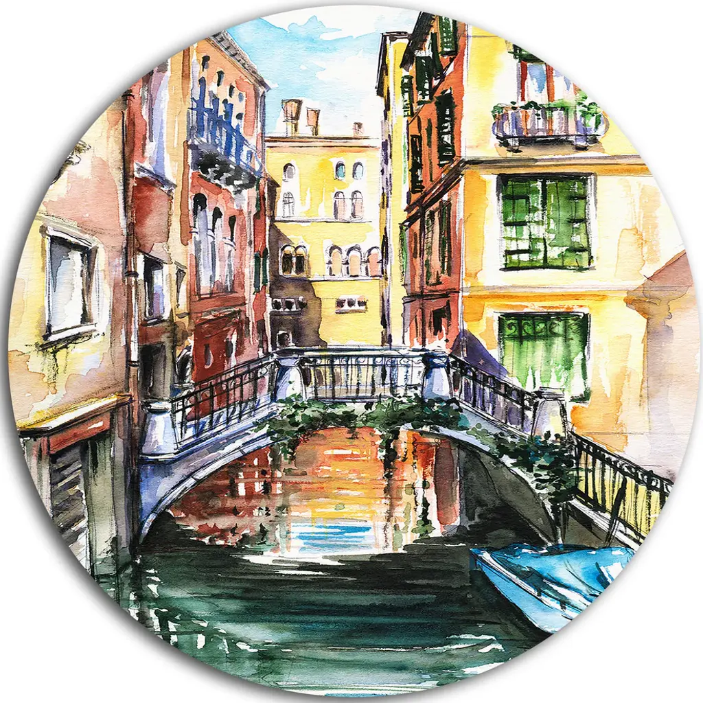 Canal In Venice, Cityscape Disc Metal Wall Art, 23"
