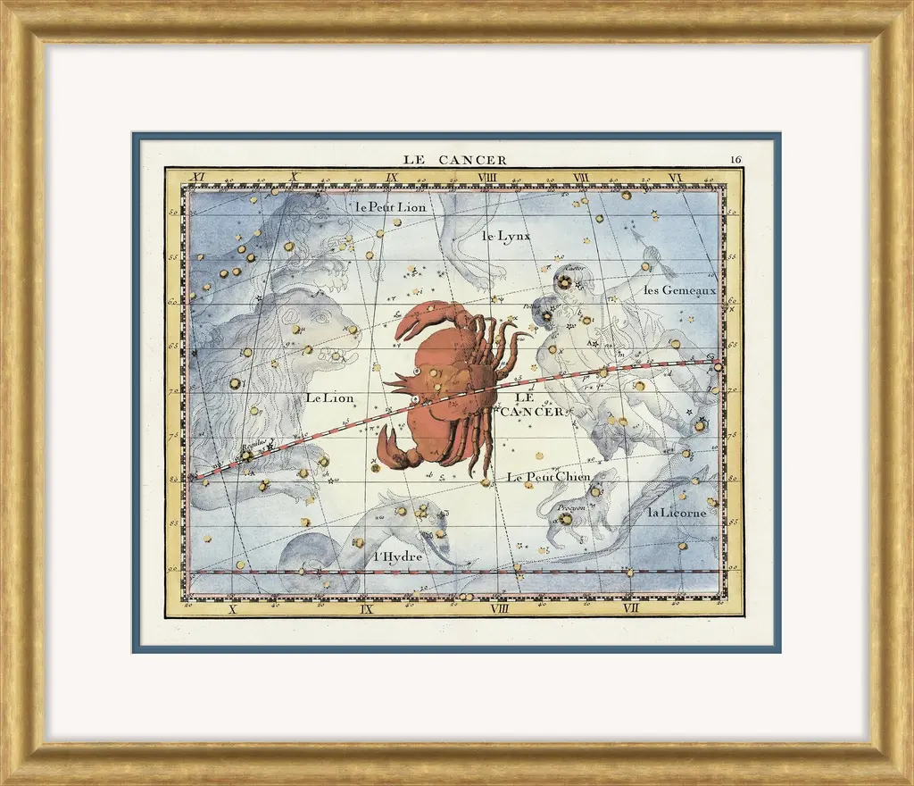 Cancer Framed Art Print from The Scholar Series by David Phoenix ABOUT THE SCHOLAR SERIES BY DAVID PHOENIX: In their first collaboration, award-winning interior designer David Phoenix and third-generation art house Soicher Marin present the Scholar Series, seven collections of sophisticated images that span time periods and artistic mediums. Reflecting David’s extensive interior design work, the collections are rooted in tradition and viewed through a unique, contemporary lens. “I’ve always been fascinated by classical European design and architecture as well as turn-of-the-century and modern art,” David says. “An intricate column study or a soulful brushstroke—beauty is beauty.” David’s new Scholar Series explores pen and ink drawings, chalk and gouache studies, watercolors, photography, and printed illustrations. “Over the years, inspired by travel, studies, even doodles, I’ve collected images that stuck with me. Soicher Marin really let me run with my vision. It’s been such a joy to see my ideas realized in beautiful prints on paper and canvas.” MATERIALS: Archival Giclee Print. High quality materials and craftsmanship. Artisian handcrafted wood moulding imported from Europe. Made in the USA