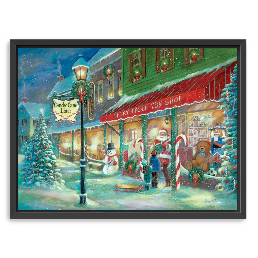 Candy Cane Lane Canvas Giclee - Framed / Oak / 24x32