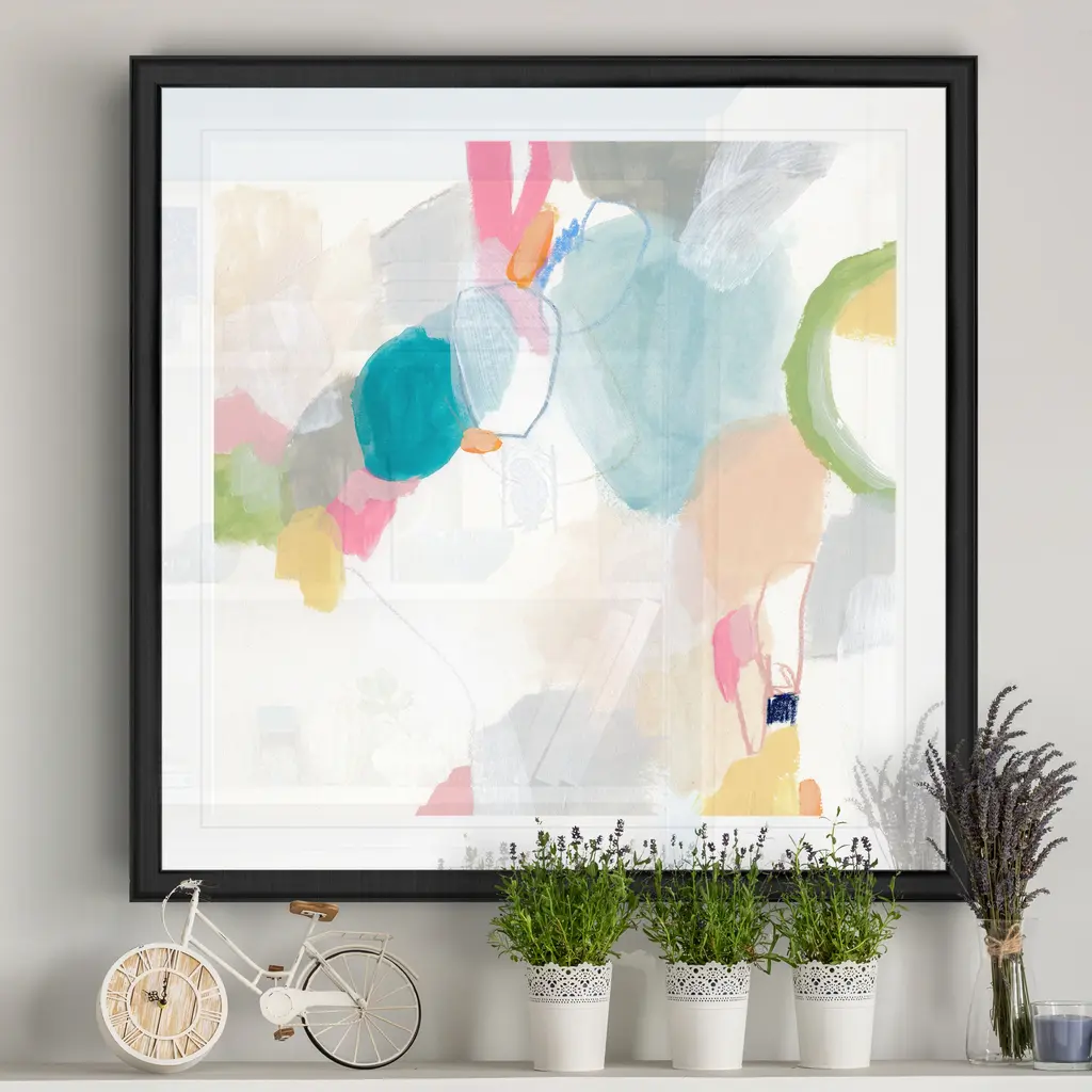 Candy Jacket IV -Black Framed Print A premium Black Framed giclee print Featuring a beveled a matt , acrylic glass, and a high quality giclee print 5 SIZES AVAILABLE 34''x34''- Overall Size 30''x30'' - Overall Size 26''x26''' - Overall Size 22''x22''' - Overall Size 18''x18''' - Overall Size Each piece is made to order. Built to Last Each piece comes ready to hang Fade and Water resistant Made domestically